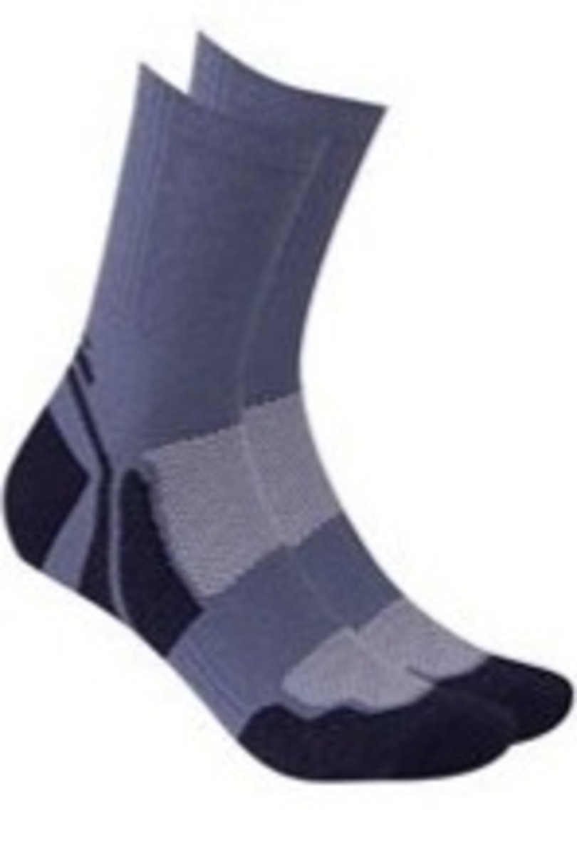 Bavlněné krátké sportovní ponožky s froté v chodidle a stříbrnými ionty. Výrobek se vyznačuje systémem stahování, který zabraňuje sklouzávání výrobku na noze, kanálkovými zónami pro odvod přebytečné vlhkosti a tepla, prodyšností a plochým šéfem. .