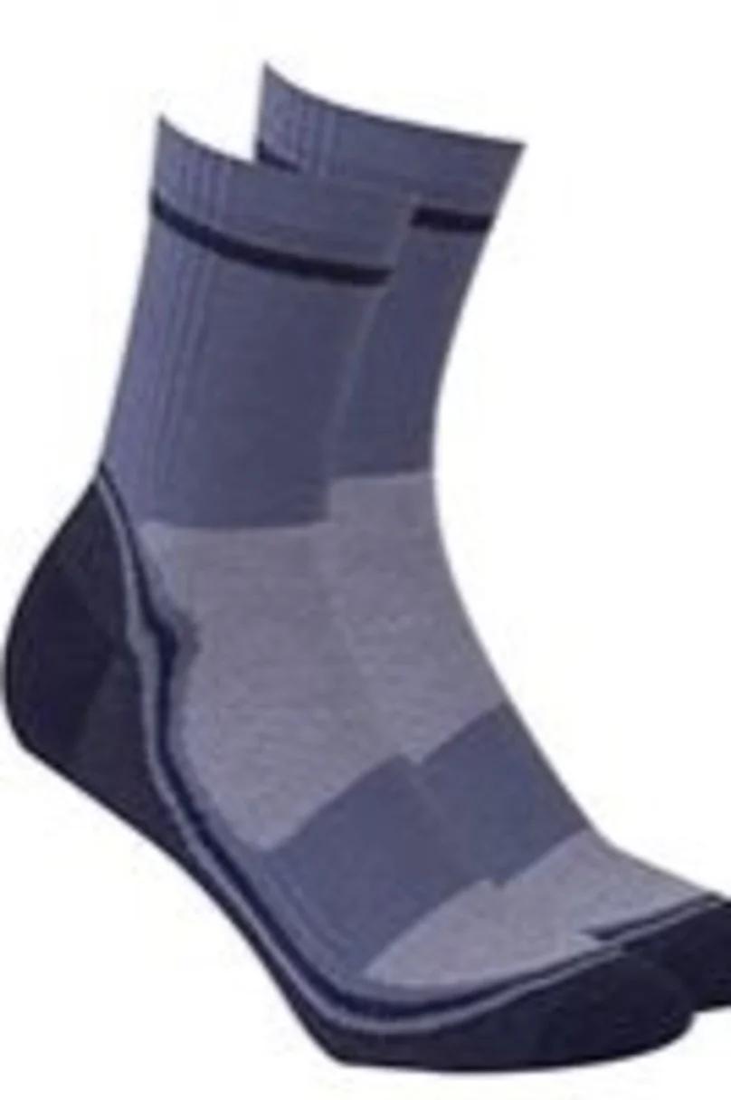 Pánské sportovní ponožky se vzorem stříbrných iontů. Výrobek se vyznačuje stahovacím systémem zabraňujícím sklouzávání výrobku na noze, kanálkovými zónamióodvádějícími přebytečnou vlhkost a teplo, jakož i prodyšností a plochým šéfem..