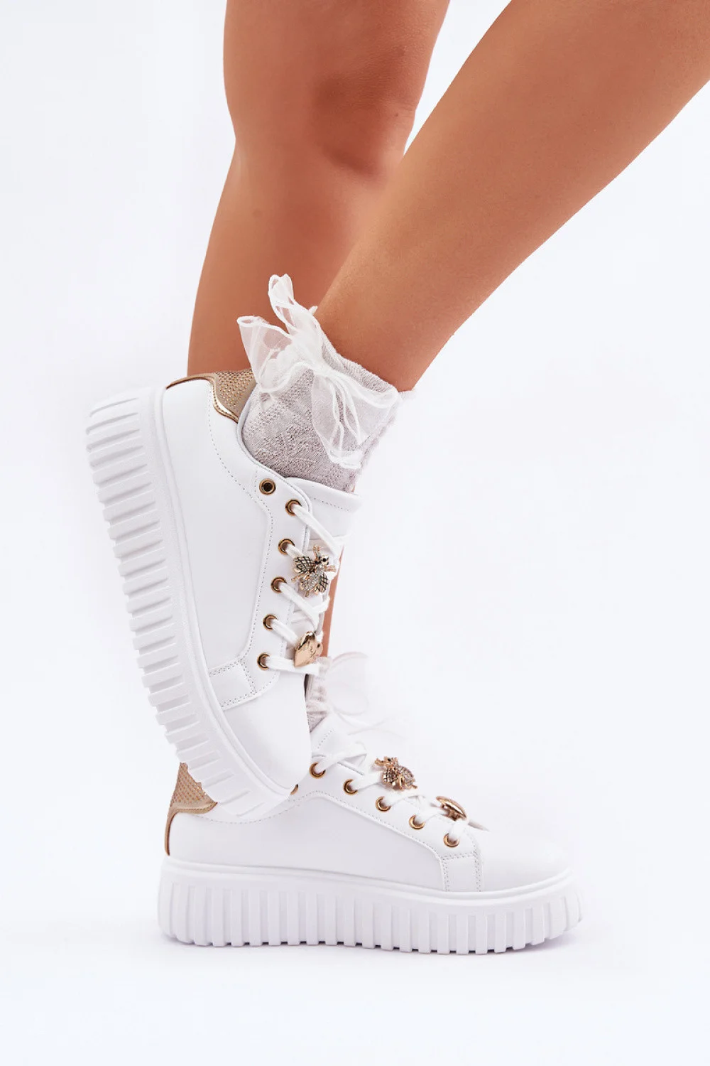 Dámské tenisky vyrobené z ekologické kůže. Umístěné na platformě, která přidává jemnou výšku a zároveň poskytuje pohodlí během chůze. Klasické šněrování umožňuje ideální přizpůsobení se noze. Výjimečnou výhodou tohoto modelu jsou roztomilé zapínání, které dodávají originalitu a dívčí půvab. Tento model se skvěle hodí jak do každodenních, tak do volnějších stylizací, bude stylovým doplňkem každého šatníku. materiál koženka Stélka tkanina plus piano Výška boty 6.5 cm Výška podrážky 4.5 cm Velikost Délka vložky 3623 cm3723.5 cm3824 cm3924.5 cm4025.5 cm
