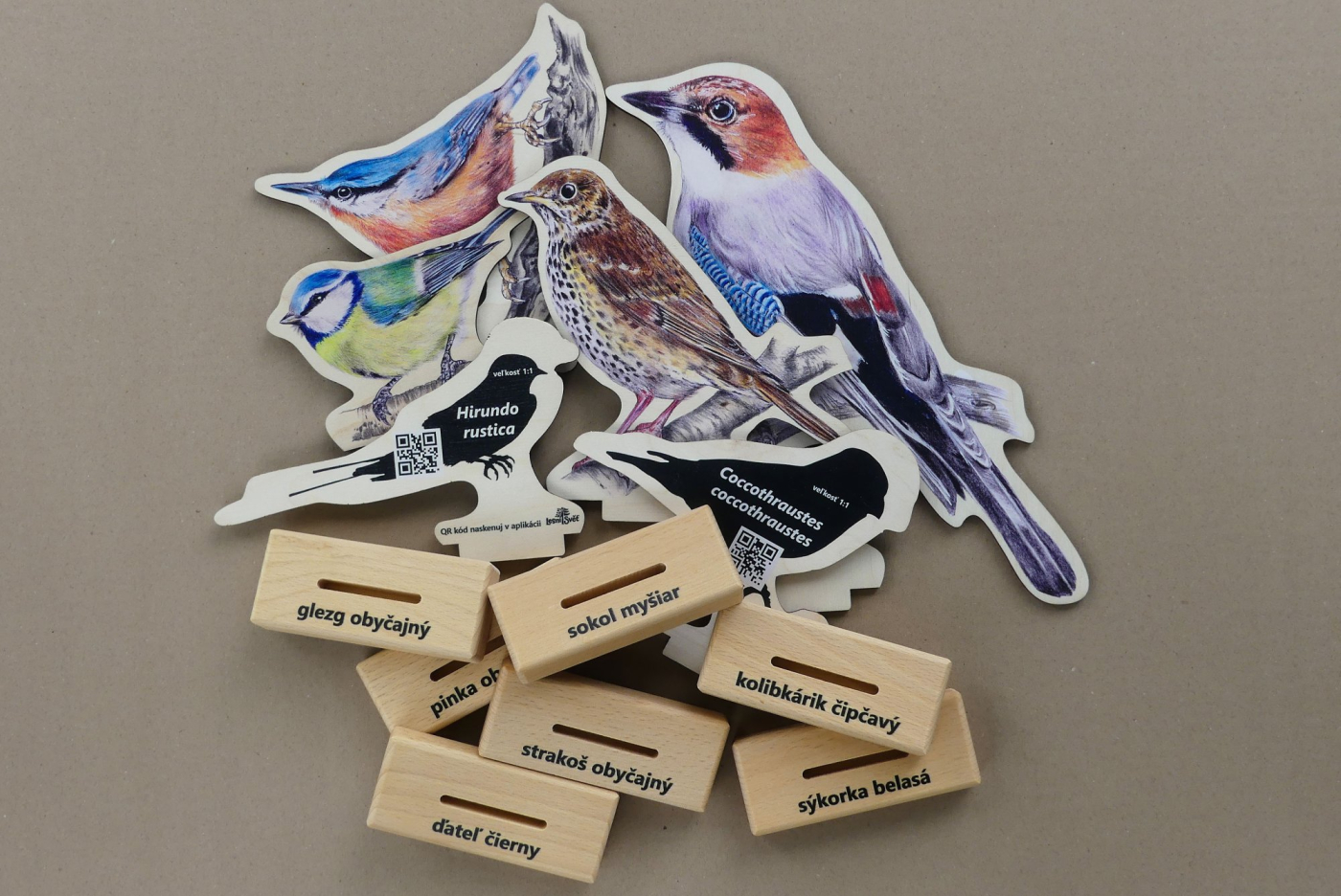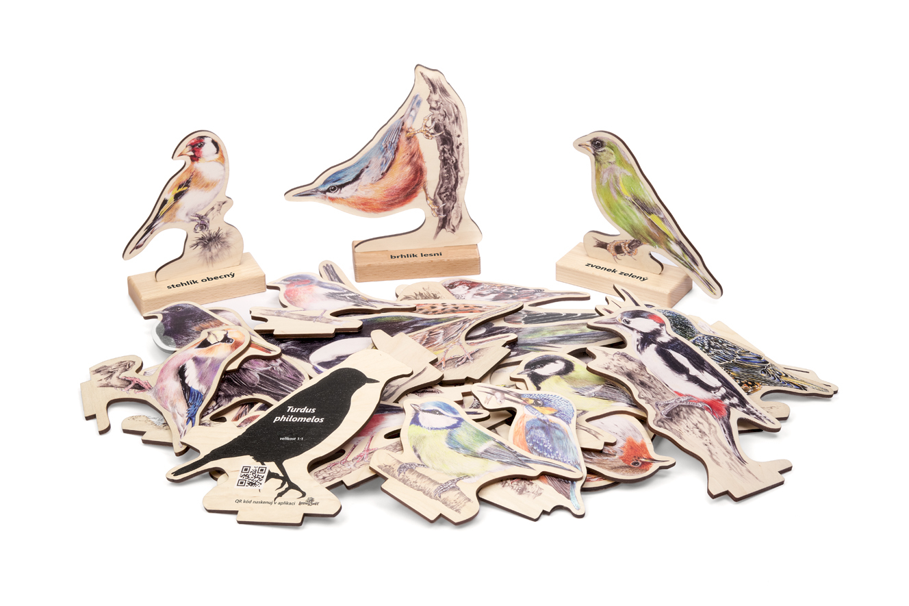 Súpravu Spoznávaj vtáky vyrábajú v našej dielni české ruky z kvalitného českého certifikovaného dreva. Balenie obsahuje 28 vtákov, makety sú z preglejky s veľkosťou 8 – 35 cm. Balené v kartónovej škatuľke. Autori kresieb sú českí ilustrátori, obrázky sú chránené autorskými právami. Súprava Spoznávaj vtáky zábavnou a hravou formou zoznamuje deti aj dospelých s prírodou. Maketa je oddeliteľná od podstavce, ktorý je z masívu. Na podstavci je uvedený slovenský názov vtáka. Na zadnej strane makety sú latinský názov vtáka, jeho skutočná veľkosť a QR kód, ktorý pomocou aplikácie Lesný svet umožní prehrať jeho hlas. DRUHY VTÁKOV: brhlík obyčajný, kolibiarik čipčavý, červienka obyčajná, tesár čierny, glezg hrubozobý, drozd plavý, hýľ obyčajný, belorítka obyčajná, kavka tmavá, drozd čierny, kukučka obyčajná, rybárik riečny, pinka obyčajná, sokol myšiar, žltochvost domový, sojka obyčajná, škorec obyčajný, stehlík obyčajný, straka obyčajná, ďateľ veľký, oriešok hnedý, strnádka žltá, sýkorka veľká, sýkorka belasá, strakoš obyčajný, lastovička obyčajná, vrabec domový, zelienka obyčajná. Lesný svet = značka s ekologickým certifikátom udržateľného hospodárstva PEFC. Všetky produkty sú vyrobené s ohľadom na životné prostredie.