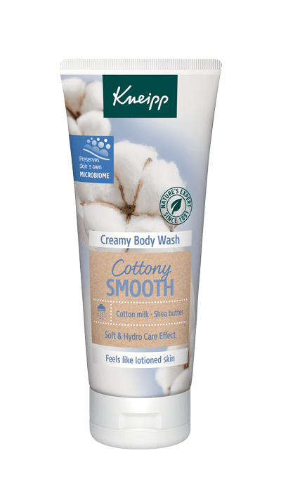 Sprchový gel Cottony Smooth z bavlníkového mléka (mléka ze semínek bavlny) a bambuckého másla je sametově jemný, příjemně voní a po napěnění vytváří krémovou a dlouhotrvající pěnu, do které se celá zachumláte. Jeho hlavní předností je šetrné složení, které nenarušuje mikrobiom (bakteriální flóru) vaší kůže. Naopak ho chrání, aby zůstal v rovnováze. Vaše pokožka tak bude ještě silnější a odolnější.