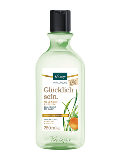 Dopřejte si jemnou očistu těla s Kneipp® sprchovým gelem Be happy, vaše pokožka bude po použití dokonale hydratovaná a příjemná vůně éterických olejů z mandarinky a vetiverie potěší i vaši mysl.