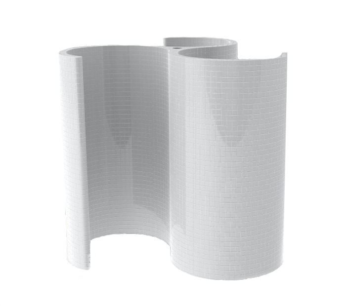 Unikátní konstrukce sprchového koutu Shower vnáší do interiérů domů a wellness center velmi dynamický prvek. Exkluzivní design výrobku Vám umožní rozvržení keramických obkladů dle Vaší fantazie. Ozvláštněte prostor jednoduše pomocí připravené konstrukce.