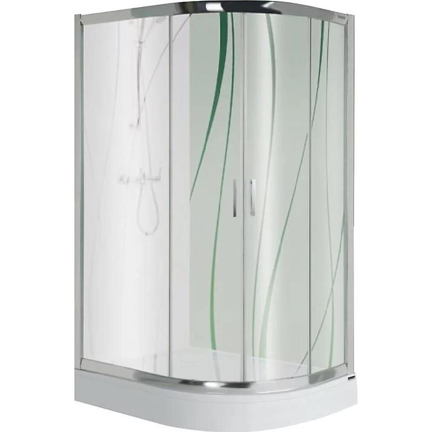 Asymetrický čtvrtkruhový sprchový kout, rozměr: 120 x 90 x 190 cm. Sprchový kout je vyrobený z bezpečného skla tloušťky 5 mm s jemným potiskem a povrchem pro snadnou údržbu Posuvné dveře jsou s pojezdy, horní pojezdy regulovatelné, spodní pojezdy lze vysadit. Dveře jsou s magnetickým těsněním. Zavřené půlkulaté svislé a vodorovné profily v chromu doplňují estetický vzhled sprchového koutu. S možností regulace na nástěnném profilu. Sprchový kout je vyrobený z vysoce kvalitních materiálů a bude nejen praktickým ale i stylovým elementem v každé koupelně. Dodává se s akrylátovou vaničkou, sifónem a předním krytem, celková výška včetně vaničky je 205,5 cm. Doporučené vaničky: Návod