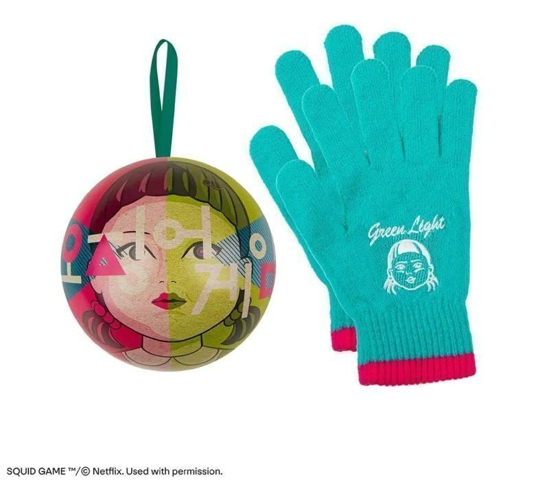 Vánoční dekorace Squid Game s rukavicemi.Rozměry: 8,5 x 8,5 x 8,5 cm