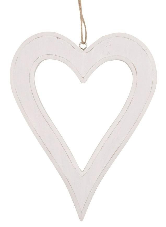 Srdíčko dřevěné bílé na zavěšení 19,5 cm