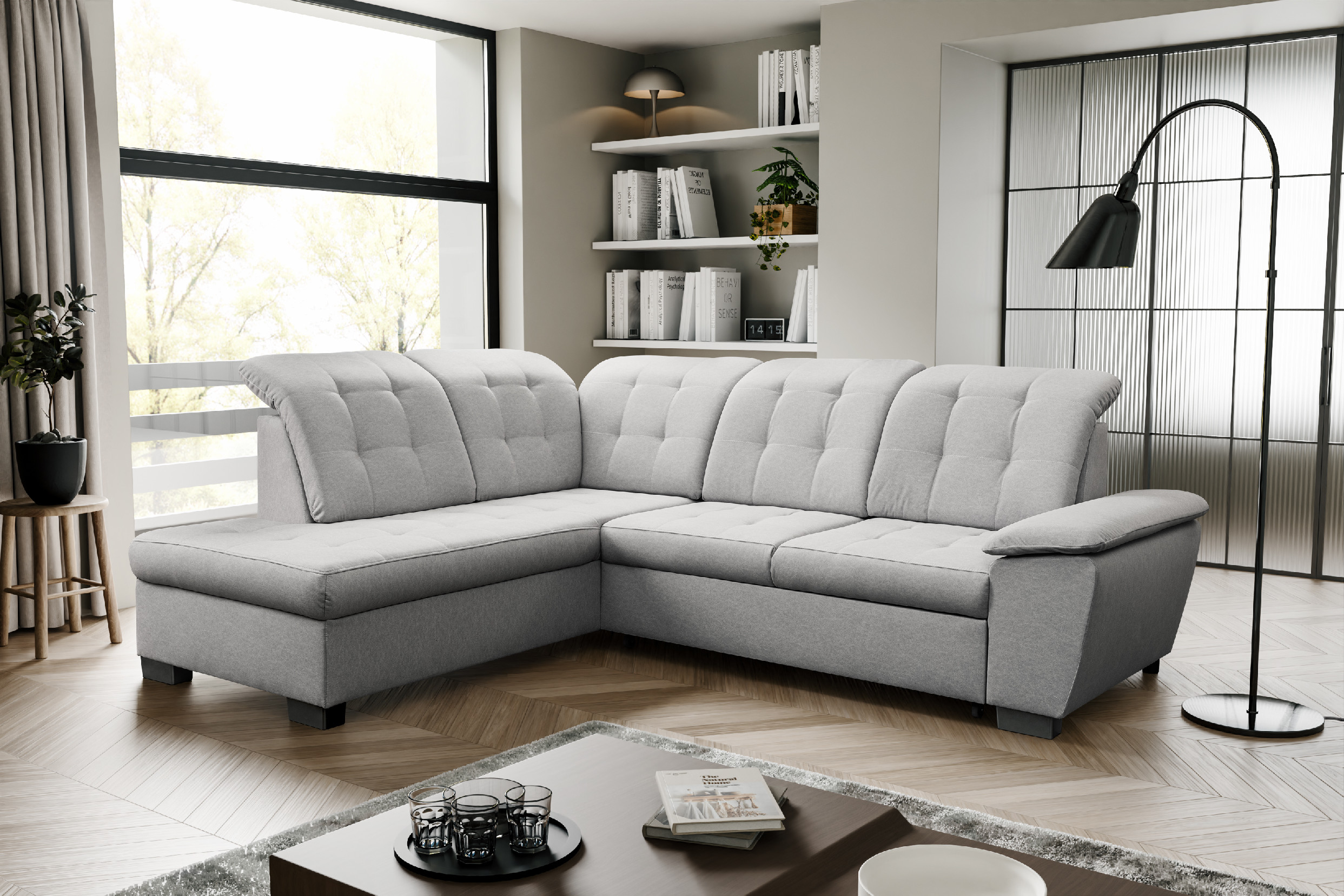 Sedací souprava Kalvi Sedací souprava Kalvi si získá vaši pozornost nejen svým vzhledem, ale také svou vysokou kvalitou. Sedací souprava vám nabídne možnost rozkladu pro příležitostné spaní a úložný prostor. • Vlastnosti sedací soupravy Kalvi Kostra sedací soupravy Kostra sedací soupravy je vyrobena z měkkého a tvrdého dřeva. Výplň sedáků a opěradel Na výplň jsou použity pružiny Faliste a PUR pěna. Opěrky hlavy Polohovatelné opěrky hlavy. Úložný prostor Součástí otomanu je úložný prostor k úschově například lůžkovin. Rozkládací plocha Sedací soupravu lze rozložit a vytvoří se tak plocha pro příležitostné spaní. Nožičky Sedací souprava stojí na plastových nožičkách. Čalouněná záda Díky čalouněným zádům sedací soupravu můžete umístit i do prostoru. • Kódy variant pro sedací soupravu KalviLevá variantaPravá variantaOSL + 2FBP2FBL + OSP • Úložný prostorNedílnou součástí sedací soupravy je prostorný úložný prostor nacházející se v otomanu (prodlouženém rohu sedačky). Prostor je vhodný pro uskladnění lůžkovin. Vnitřek je z bílé, z lehce omyvatelné desky. Úložný prostor se otevře zvednutím sedací části otomanu.Rozkládací plochaRozkládací ložná plocha je příjemná při denním odpočinku, ale je vhodná i na příležitostné přespávání. Rozklad je čalouněný. Sedačka se rozloží snadným vysunutím rozkládací plochy z pod sedáku • Rozměry sedací soupravy:Šířka265 cmVýška87 / 103 cmVýška sedu44 cmHloubka 215 cmHloubka sedu56 cmSpací plocha124 x 185 cmPočet kusů sedací soupravy Kalvi1. 170 x 110 x 80 cm - cca 65 kg2. 220 x 110 x 80 cm - cca 61 kgJedná se o odhadované rozměry + - 5 cm / kg s ohledem na balení daného kusu. • Potahová látka UrbanUrban je tkaná látka, která se vyznačuje vysokou odolností a je příjemná na dotek. Má speciální úpravu nazvanou WATER BLOCKED, která zajišťuje, že vylitá tekutina zůstane na povrchu a nepronikne do vláken tkaniny. Díky tomu je čištění této látky velmi snadné - stačí použít papírovou utěrku, která absorbuje kapalinu.Kompletní vzorník látky Urban Urban 7 Urban 8 Urban 9 Urban 10 • Potahová látka AragonLátka ARAGON je vyrobena z vysoce kvalitní příze, je extrémně měkká a příjemná na dotek, díky čemuž je sezení na ní čistým potěšením. Povrch látky je ošetřen speciální úpravou Water Repellent, který ji chrání před pronikáním vlhkosti a tekutin. Kromě toho je látka vhodná pro rodiny s domácími mazlíčky.Kompletní vzorník látky Aragon Aragon 14 Aragon 35 Aragon 70 Aragon 80 • Kompletní nabídka potahových látekLíbí se vám daný produkt, ale rádi by jste si vybrali jinou látku? Na našich kamenných prodejnách Vám bude k dispozici kompletní vzorník, který obsahuje více než 150 látek. Kompletní nabídka látek na našich prodejnách •
