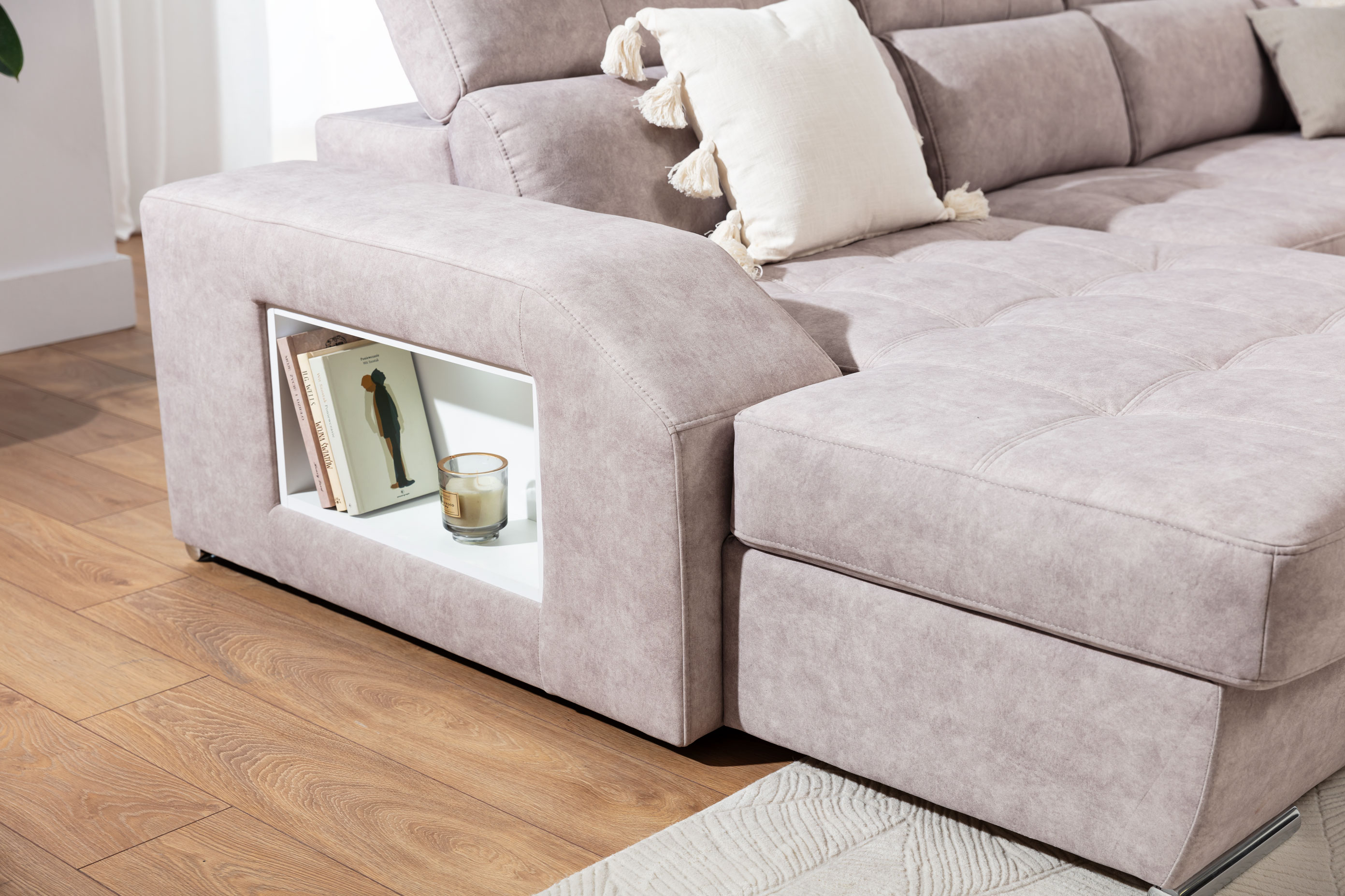 Sedací souprava Tulon do U Prostorná sedací souprava Tulon do U se stane nedílnou součástí vašeho domova a díky ní si maximálně odpočinete. • • Kostra sedací soupravy Kostra je vyrobena z měkkého a tvrdého dřeva. Výplň sedáků a opěradel Na výplň jsou použity pružiny Faliste a PUR pěna. Polohovatelné opěrky hlavy Součástí sedací soupravy jsou také polohovatelné opěrky hlavy. Rozkládací plocha Sedací soupravu lze rozložit pro příležitostné spaní - spací plocha je v technické látce. Úložný prostor Součástí sedačky je také úložný prostor v otomanu, boční výklenek a výsuvná zásuvka v područce. • Rozkládací plocha pro příležitostné spaní Úložný prostor v otomanu Výklenek v područce Výsuvná zásuvka z područky • Kódy pro varianty sedací soupravy Tulon do ULevá variantaPravá variantaOSBL + 2F + R + 1BP1BL + R + 2F + OSBP • Rozměry sedací soupravy:Šířka347 cmVýška79 / 94 cmVýška sedu43 cmHloubka173 / 196 cmHloubka sedu56 cmSpací plocha265 x 122 cmPočet kusů sedací soupravy Tulon do U1. 95x110x80 cm - cca 50 kg2. 105x105x80 cm - cca 43 kg3. 125x110x80 cm - cca 55 kg4. 180x130x80 cm - cca 79 kgJedná se o odhadované rozměry + - 5 cm / kg s ohledem na balení daného kusu. • Potahová látka UrbanUrban je tkaná látka, která se vyznačuje vysokou odolností a je příjemná na dotek. Má speciální úpravu nazvanou WATER BLOCKED, která zajišťuje, že vylitá tekutina zůstane na povrchu a nepronikne do vláken tkaniny. Díky tomu je čištění této látky velmi snadné - stačí použít papírovou utěrku, která absorbuje kapalinu. Kompletní vzorník látky Urban Urban 5 Urban 8 Urban 12 Urban 14 • Látka WIND je hladká, tkaná textilie, která je příjemná na dotek. Jednolitý povrch připomíná len či přírodní vlákno. Díky široké škále barev v zemitých odstínech a jemné struktuře se látka WIND bude dobře hodit jak k stylu BOHO, tak i do dalších designů. Látka je vhodná pro rodiny s domácími mazlíčky.Kompletní vzorník látky Wind Wind 21 Wind 48 Wind 77 Wind 99 • Kompletní nabídka potahových látekLíbí se vám daný produkt, ale rádi by jste si vybrali jinou látku? Na našich kamenných prodejnách Vám bude k dispozici kompletní vzorník, který obsahuje více než 50 látek. Kompletní nabídka látek na našich prodejnách Další možnost sedací soupravy Tulon Sedací souprava Tulon do LModerní a prostorná sedací souprava Tulon do L je ojedinělá svými možnostmi úložného prostoru. Zobrazit produkt •