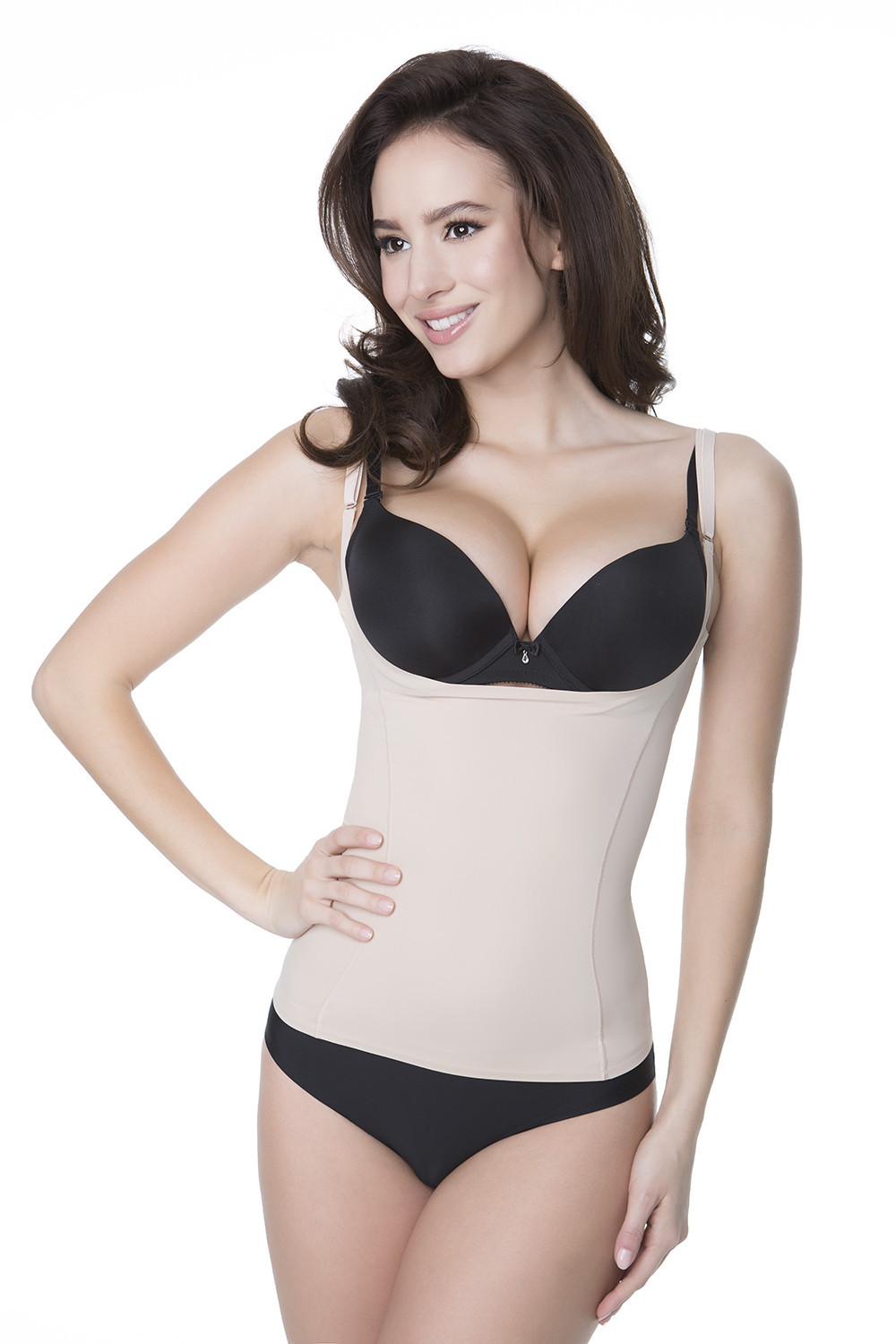 Model se nerýsuje pod oblečením díky moderní bezešvé technologii provedení okrajů technologie INVISIBLE-LINE. Košilka je ušitá z jemného a prodyšného materiálu. Model se ideálně přizpůsobuje postavě. Speciální látkové panely pružně zeštíhlují problémové partie, zeštíhlují bříško a pas. Díky silikonovému pásku se košilka při nošení neposouvá. Ramínka je možné nastavit, ale nelze je odepnout. Materiálové složení: 84% polyamid, 16% elastan. Rozměry beder: S 90-94 M 96-100 L 102-106 XL 108-112