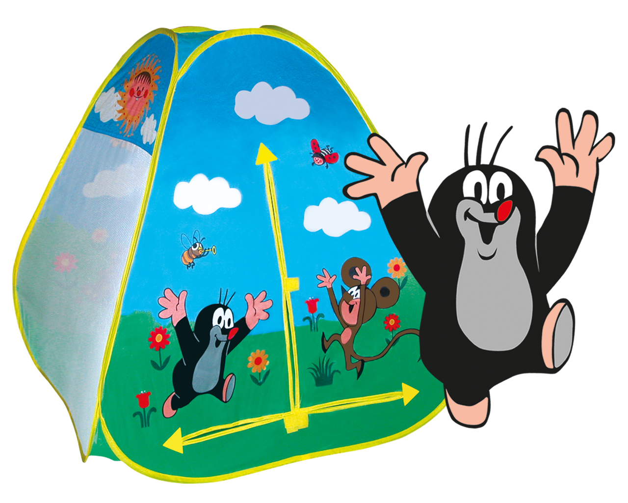 Dětský stan s motivem Krtečka do dětského pokojíčku nebo dětského koutku jistě potěší každé dítko! V přední části otvor na suchý zip, boční stěny z průhledné síťoviny pro přívod vzduchu, pružné lamely a praktická taška na zip pro uskladnění.