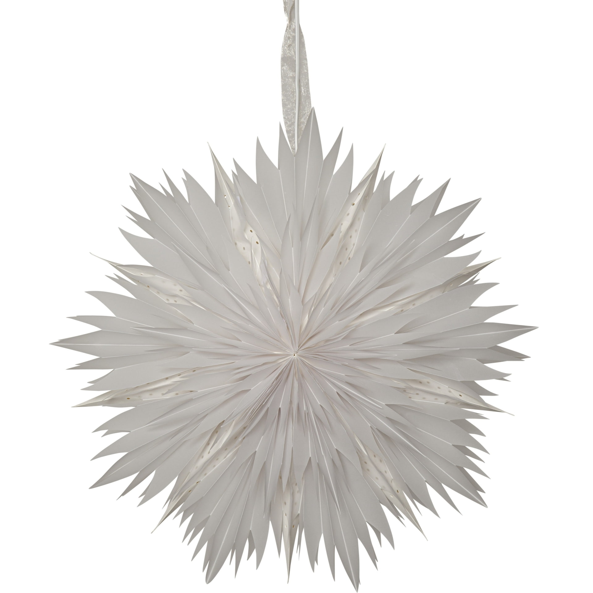 STAR TRADING Závěsná svítící hvězda Dis White 60 cm, bílá barva, papír. Pozvěte si domů útulnou atmosféru, která podtrhne sváteční kouzlo vašeho domova. Tato nádherná bílá hvězda o průměru 60 cm od Star Trading okouzlí svým poloprůsvitným papírem, a po rozsvícení vytvoří měkké, útulné světlo. Je ideální jako elegantní ozdoba do okna nebo na stěnu – nejen v období Vánoc.