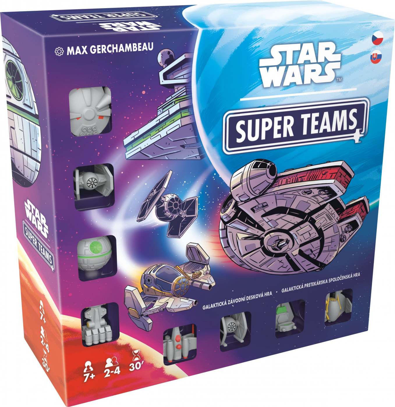 Zábavná a strategická týmová závodní hra. Desková rodinná hra v hlavní roli s osmi klasickými loděmi z universa Star Wars, rozdělenými do dvoučlenných týmů, jež je nutné provést přes galaktickou mapu a zároveň dávat pozor na sabotáže ze strany ostatních hráčů. Přesněji řečeno, můžete jim ukázat, jak moc vám na nich záleží tím, že je pošlete na pole s asteroidy. I s přihlédnutím k těmto sabotážím trvá hra zhruba 20 minut a je vhodná pro dva až čtyři hráče ve věku od sedmi let. Jedná se o strategickou, a přesto dostupnou deskovou hru, jejíž příprava je velice jednoduchá. Hráči pak při hře používají karty tak, aby postoupili se svým týmem k cílové čáře. Zároveň se však snaží předvídat pohyb ostatních hráčů a pečlivě vybírat karty, které zahrají. Je tedy potřeba dávat pozor na své "spoluzávodníky", kteří budou pracovat na tom, aby vám co nejvíce škodili a sami mohli využít bonusová pole. Jak již bylo řečeno výše, cílem hry je doletět s oběma figurkami vašeho dvoučlenného týmu do cíle jako první. Hráči ovládají figurky číselnými kartami v barvách týmů, ale má to háček. Karty se rozdávají náhodně, takže často budete muset pohybovat i figurkami svých soupeřů. Je tedy potřeba dobře plánovat a snažit se karty hrát v ten nejlepší možný okamžik, abyste sobě pomohli a ostatním uškodili. Na mapě najdete zrychlující pole, zpomalující asteroidy, zákeřné černé díry i bonusová políčka, na kterých získáte speciální karty, jež vám v závodě pomohou. Soupeřte se svými přáteli. Dávejte pozor na nástrahy. Buďte prvním týmem, který dosáhne cíle. Obsah balení: 1 herní mapa 8 figurek lodí 72 karet 1 česká a slovenská pravidla