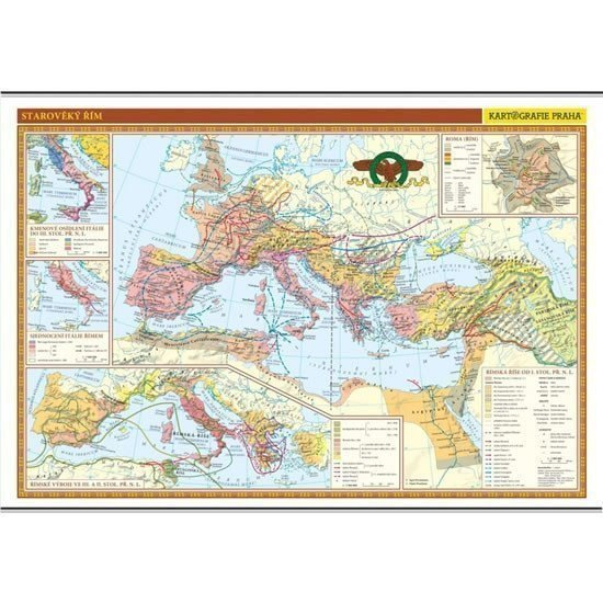 Nástěnná dějepisná mapa (laminovaná s lištami) představuje vznik a vývoj Říma a Římské říše až do období prvních století našeho letopočtu. Při koupi získáte 20 ks příručních map pro žáky zdarma. Z obsahu: Kmenové osídlení Itálie do III. století př. n. l. Sjednocení Itálie Římem Římské výboje ve III. a II. století př. n. l. Římská říše od I. stol. př. n. l. plán Říma