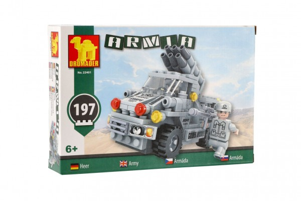 Série stavebnic Dromader jsou velmi bohaté a rozmanité pestrými barvami. Krásná stavebnice vojenského auta je pro všechny malé i větší stavitele. Obsahuje 194 dílků. Rozměry balení 22 x 15 x 5 cm. Vhodné pro děti od 6 let.