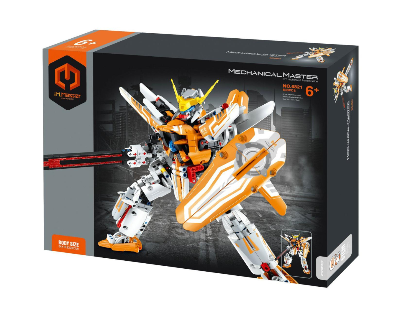 Tato stavebnice umožní sestavit impozantního robota s oranžovo-bílou výzbrojí, dlouhým mečem a masivním štítem. S více než 800 dílky, robota lze dynamicky rozpohybovat, pohyblivé ruce, nohy, hlava, zbraně. Atraktivní barevné provedení a futuristický vzhled. STEM vzdělávání: rozvoj mechanického myšlení, prostorové představivosti a motoriky.Rozměry balení 35 x 27 x 7 cmVhodné pro děti od 6 let