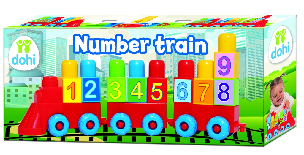 Stavebnice Vláček plastový s čísly – pro nejmenší dětí, rozvíjí dětskou kreativitu, motoriku a učí děti jednoduchým počtům. Balení obsahuje lokomotivu a dva vagony a kostky s čísly.