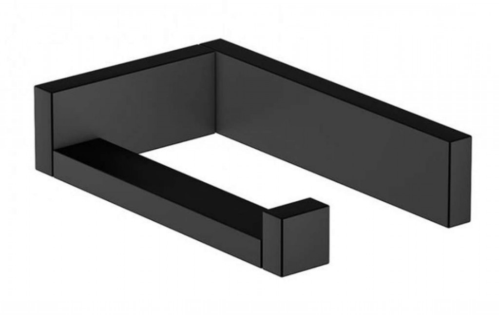 Držák na toaletní papír barva matná černá materiál mosaz rozměry 130 x 80 mm hranatý tvar k připevnění na stěnu přišroubováním nebo lepidlem včetně montážní sady