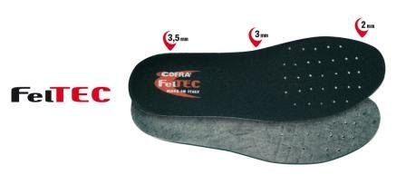 - Antistatická a anatomická stélka, vyrobena z plsti; tkanina vrchní vrstvy absorbuje pot.