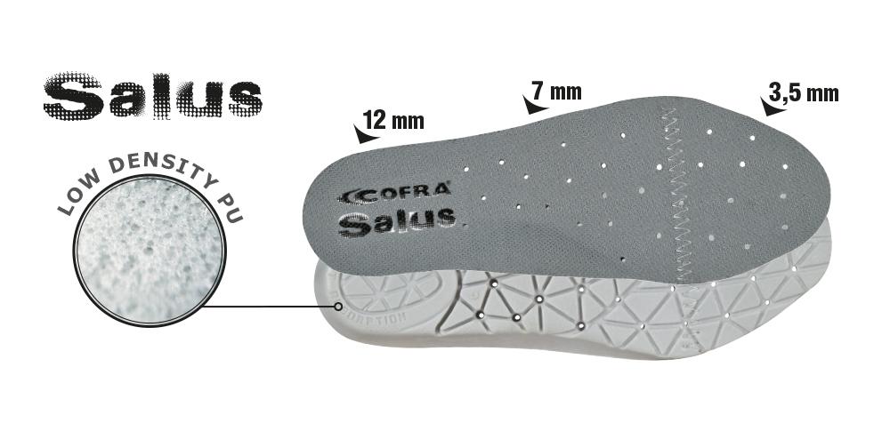 - Předtvarovaná děrovaná stélka vyrobená z antistatické expandované polyuretanové pěny, která uspokojí všechny různé potřeby při chůzi. Předtvarovaná linie zajišťuje správnou oporu po celý pracovní den, a to v každém místě opory chodidla. Velmi nízká tvrdost materiálu zajišťuje "polštářový efekt", aniž by ovlivňovala dokonalé držení těla uživatele během všech fází chůze a ohybů