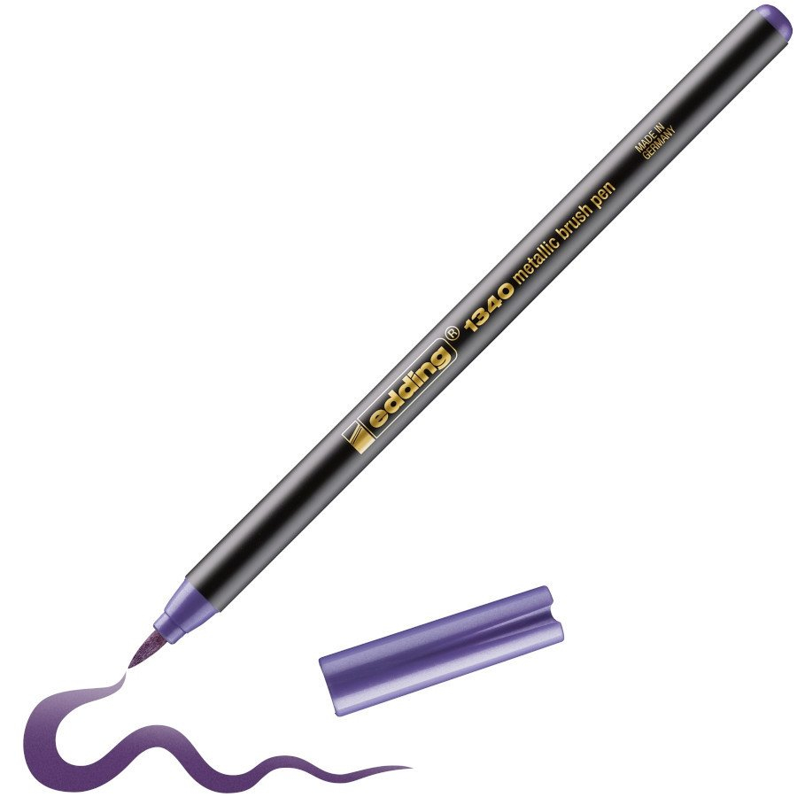 Metalický štětcový fix edding 1340 s flexibilním hrotem je určený pro ozdobné krasopsaní na světlý i tmavý papír. Měkký hrot se chová jako štětec, je tedy možné tvořit tenké linky i zdobit v širší ploše. Ideální je jejich použití pro handlettering, scrapbooking i journaling. Metalické brushpeny edding 1340 vynikají sytým inkoustem, který velmi dobře kryje. Zářivý inkoust na bázi vody se nepropíjí papírem a je světlostálý. Fixy nabízí také psaní a kreslení s barevnými přechody - během chvíle vytvoříte jedinečnou grafiku. Návod na vytvoření efektních barevných přechodů: 1. Přibližte dva fixy hrotem k sobě ve svislé poloze, 2. nechejte oba hroty se vzájemně dotknout (na 1-2 sekundy), 3. spodní fix absorbuje trochu inkoustu z fixu horního, 4. spodní fix je nyní připravený k použití. Tip: Pro plné barevné spektrum stačí poté, co jste vytvořili první barevný přechod, přendat spodní fix do horní pozice a do spodní pozice vložit fix další barvy. Díky tomu můžete pokračovat dál a dál. Síře stopy: 1-6 mm. Vyrobeno v Německu.