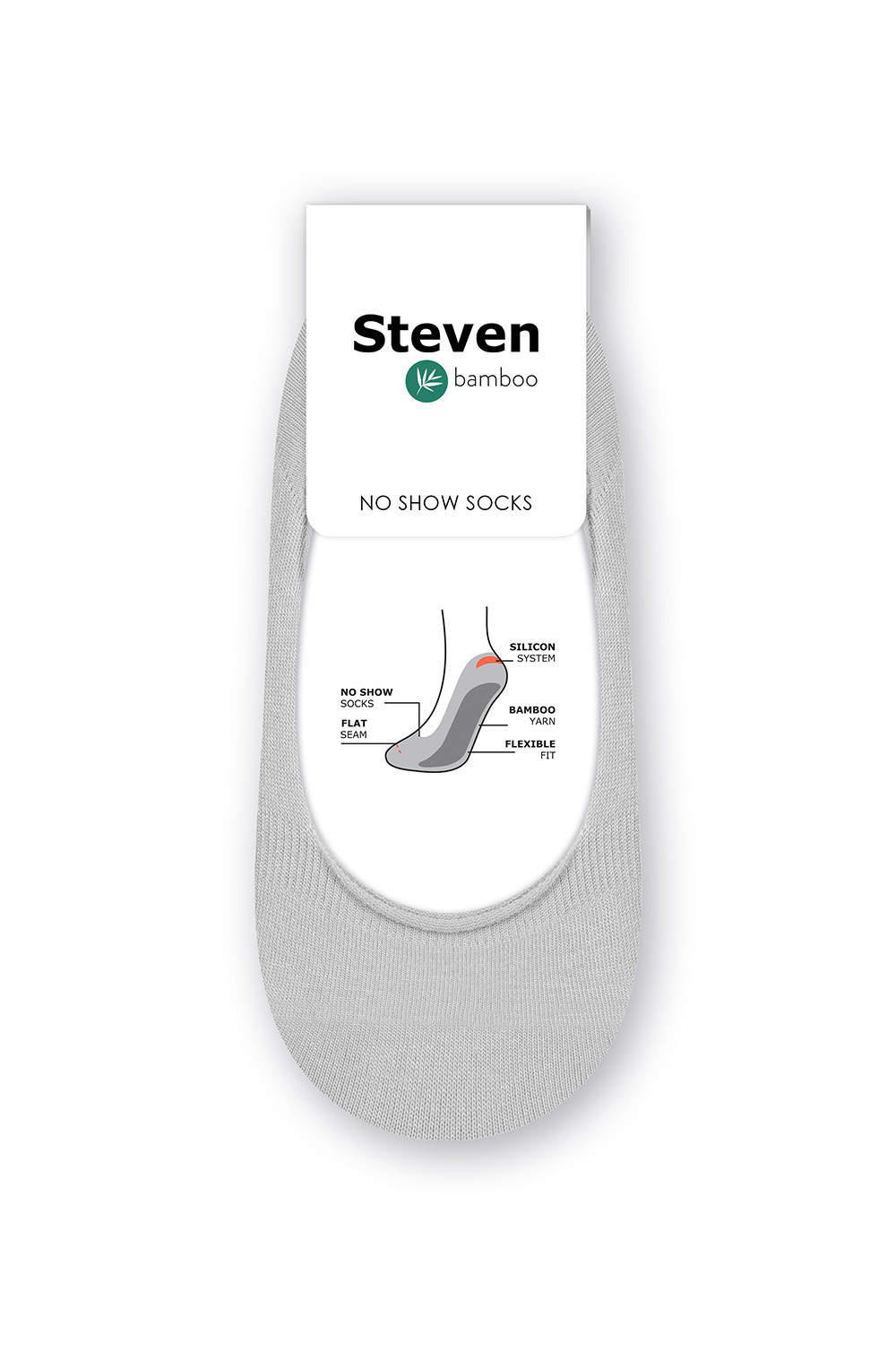 Ponožky značky Steven. Model 036-013 bambus. Výrobek je vyroben ze 76 % z viskózy, 20 % z polyamidu, 3 % z elastanu a 1 % z polypropylenu. Výrobek pro ženy.