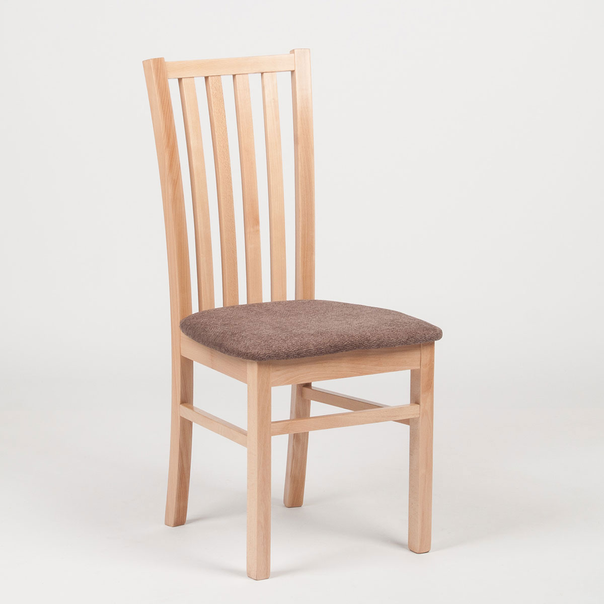 Jídelní židle K3 KR767 - látka je vyhledávaným typem židle a to nejen díky čalouněnému sedáku, ale také tvarování zádové opěrky a svislým příčkám na ní, které židli hezky oživují. Díky tvaru opěrky a kvalitnímu čalouněné židle je židle velmi a to i na dlouhé sezení, takže si ji zákazníci rádi objednávají nejen do domácího prostředí kuchyňských koutů a obývacích pokojů, ale také do restaurací, kaváren a jídelen. Díky široké škále barev moření bukového masivu a potahových látek je sladění židlí s kuchyňskými stoly, ale i s interiérem místnosti výrazně snazší.