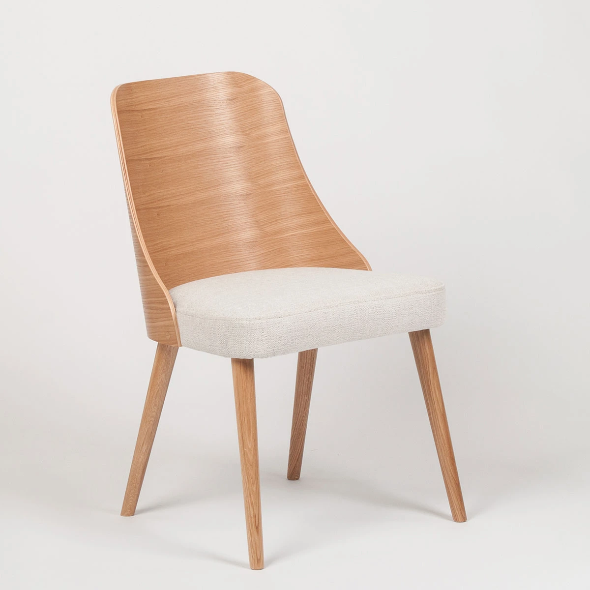 Jídelní židle KR47 působí moderně a zároveň velmi příjemně, není to židle, která by si žádala pozornost, ale spíš taková, která si vás získá postupně. Tvarovaná opěrka plynule navazuje na sedák a vytváří kompaktní celek, který působí klidně a uhlazeně. Dubová konstrukce dodává židli pevnost a stabilitu, zatímco čalouněný sedák přináší komfort, který oceníte při běžném i delším sezení jak v kuchyni, tak např. v pracovně. Díky svému tvaru se hodí i k moderním jídelním stolům, kde vynikne její jednoduchost. Je to židle, která nepůsobí okázale, ale o to víc funguje v každodenním životě.