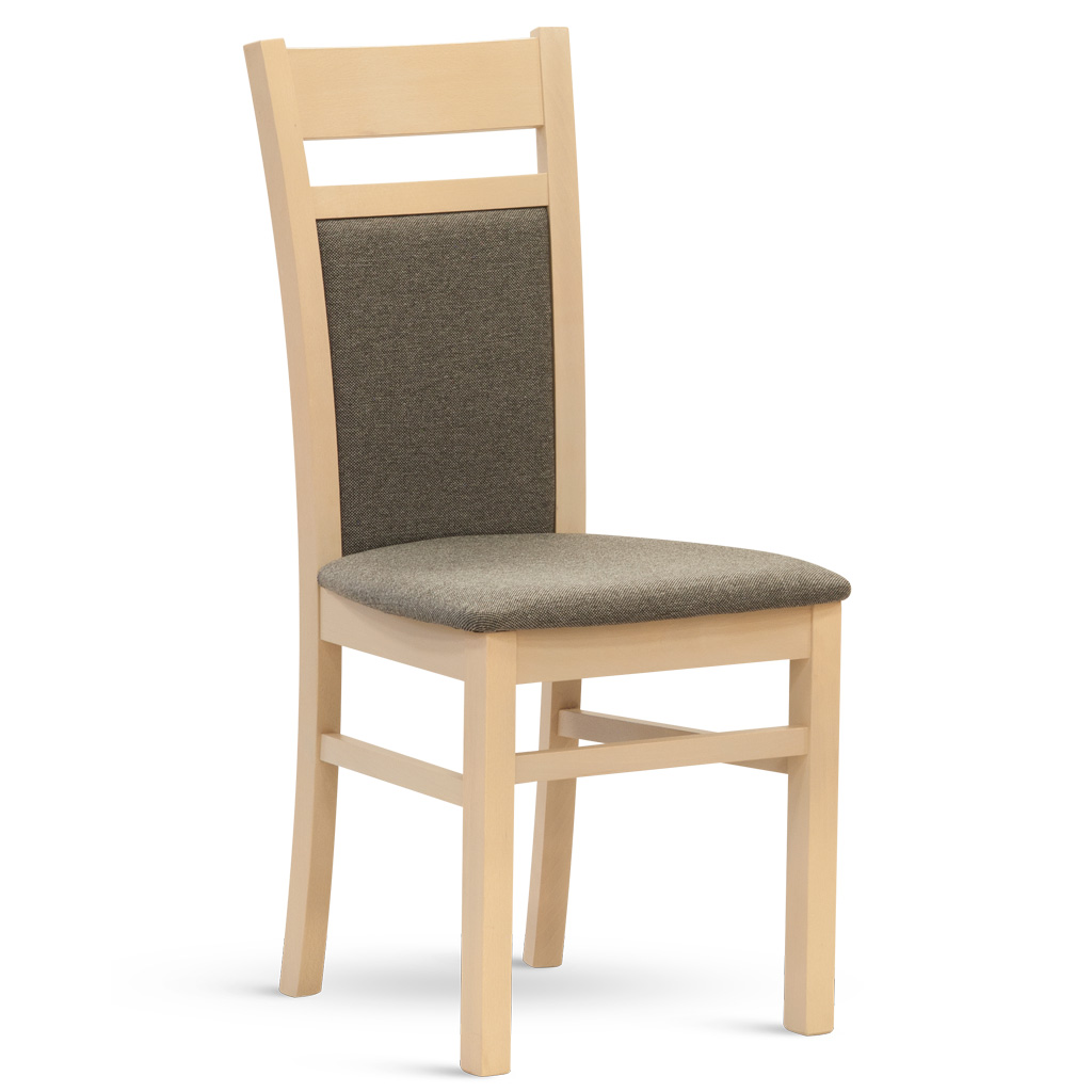 Vzhledově velmi hezká jídelní židle VITO 06 (Buk) - zakázkové látky s čalouněným sedákem a zádovou opěrkou je pořizována díky své příznivé ceně převážně do domácího prostředí a to jak do kuchyňských koutů, obývacích pokojů, ale také do pracoven nebo na chaty a chalupy. Díky zesílené konstrukci bukové kostry má židle vyšší nosnost, takže je vhodná i do zátěžových provozů restaurací, jídelen, kaváren, ale i jednacích místností, atd.. V ceně této varianty židle VITO 06 máte výrazně větší prostor na kombinaci barvy kostry židle s potahovou látkou, která se nejen hodí do prostoru místnosti, ale také se Vám typově a barevně líbí. Celkovou podobu židle si tak určuje každý zákazník sám. Tvar a výška zádové opěrky poskytuje velmi příjemnou oporu zad, takže se na židli dobře a pohodlně sedí.