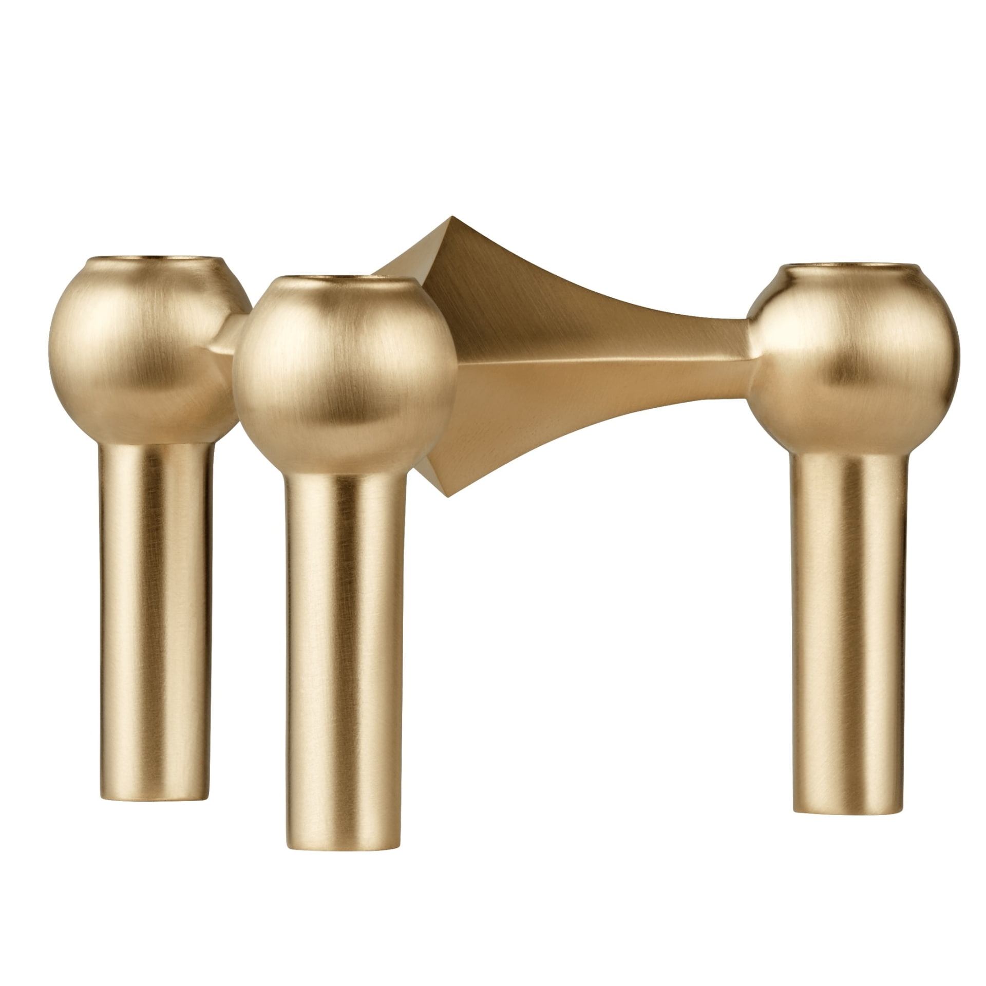 Stoff Nagel Designový svícen STOFF Nagel Brushed Brass, zlatá barva, kov. STOFF Nagel je dánská designová značka, která se dostala znovu do popředí v roce 2015, kdy se díky STOFF Copenhagen dočkal ikonický svícen opět své slávy. Stejně jako prvotní kus i novodobý svícen vychází z originálních kreseb Wernera Stoffa z 60. let 20. století, vytvořených pro Hanse Nagela.