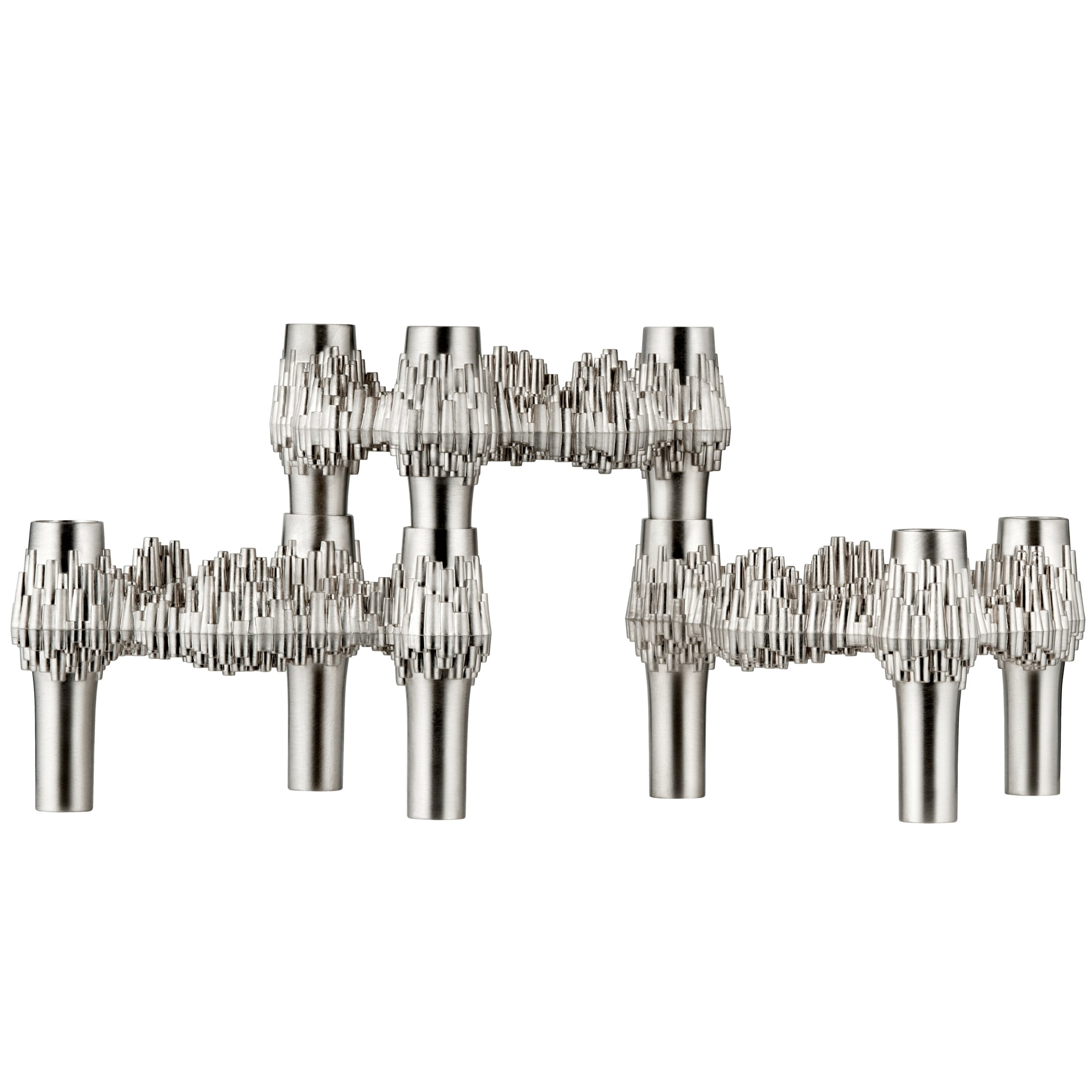 Stoff Nagel Designový svícen STOFF Nagel Quist Brushed Chrome – set 3 ks, stříbrná barva, kov. NOVÝ DESIGN