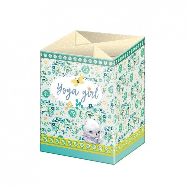 Vyrobeno z kvalitní lepenky potažené laminem. Slouží k uskladnění psacích a kancelářských potřeb. Rozměry: 80 × 75 × 105 mm.