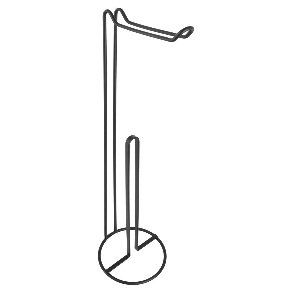 Drátěný stojan na toaletní papír je vyroben z vysoce kvalitní oceli lakované černě s krásným, matným povrchem. Rukojeť stojanu byla speciálně navržena a profilována tak, aby role při odvíjení nespadla. Má kulatou stabilní základnu se speciálním místem pro další, náhradní papír. Celkem se do koupelnového stojanu vejdou až 4 role toaletního papíru a jeho kompaktní velikost umožňuje umístění vedle záchodové mísy i ve velmi malé koupelně nebo na toaletě.