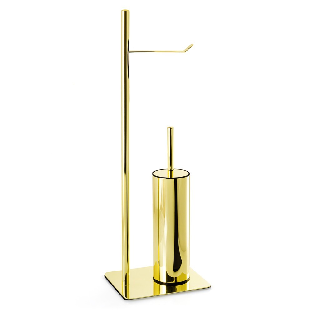 Zlatý držák na toaletní papír s toaletní štětkou je elegantním a funkčním doplňkem do koupelny. Vyrobeno z lakované oceli ve vysokém lesku, působí luxusně a dodává interiéru vytříbený charakter. Praktický stojan poskytuje pohodlný přístup k toaletnímu papíru a přiložený toaletní kartáč dodává komplexní a estetický vzhled. Ideální volba pro ty, kteří chtějí ve své koupelně spojit funkčnost s designovým vzhledem.