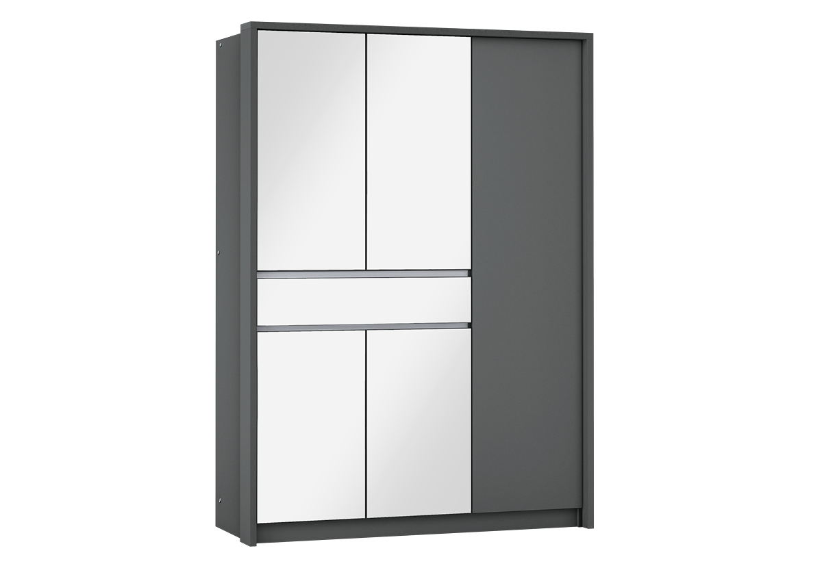 Šatní skříň Split Neobvyklé vnitřní uspořádání dodává skříni na jedinečnosti. A i přesto, že je zrcadlo rozděleno na několik dílů, tak vám opticky zvětší i menší prostory. • Vlastnosti šatní skříně Korpus a dveře Korpus a dveře jsou vyrobeny z kvalitní laminované dřevotřísky LTD o síle 16 mm. Hrany desek Hrany jednotlivých desek jsou opatřeny ABS páskami. Zadní stěna Na zadní stěnu je použita sololitová deska. Typ dveří Šatní skříň má klasické otevírání dveří. Zrcadlo Součástí dveřích je zrcadlo. Barevná varianta Šatní skříň Split je dostupná v bílém, grafitovém a platinovém odstínu. Barevná varianta je doplněna o rozdělené zrcadlo na několik dílů. • Bílá varianta Grafitová varianta Platinová varianta • Vnitřní uspořádání Šířka 210 cmPo levé straně vám bude k dispozici několik polic, uprostřed nich je jedna zásuvka. V pravé části naleznete dvě šatní tyče nad sebou.Šířka 255 cmPo levé a pravé straně vám budou k dispozici šatní tyče. V prostřední části se nachází police, uprostřed nich je jedna zásuvka. • Rozměry 217 cm celková výška 157 / 200 cm celková šířka 65 cm celková hloubka 16 mm tloušťka desky Podrobné instruktážní návody v odkazech níže ke stažení↓↓↓>> Šířka 157 cm Šířka 200 cm