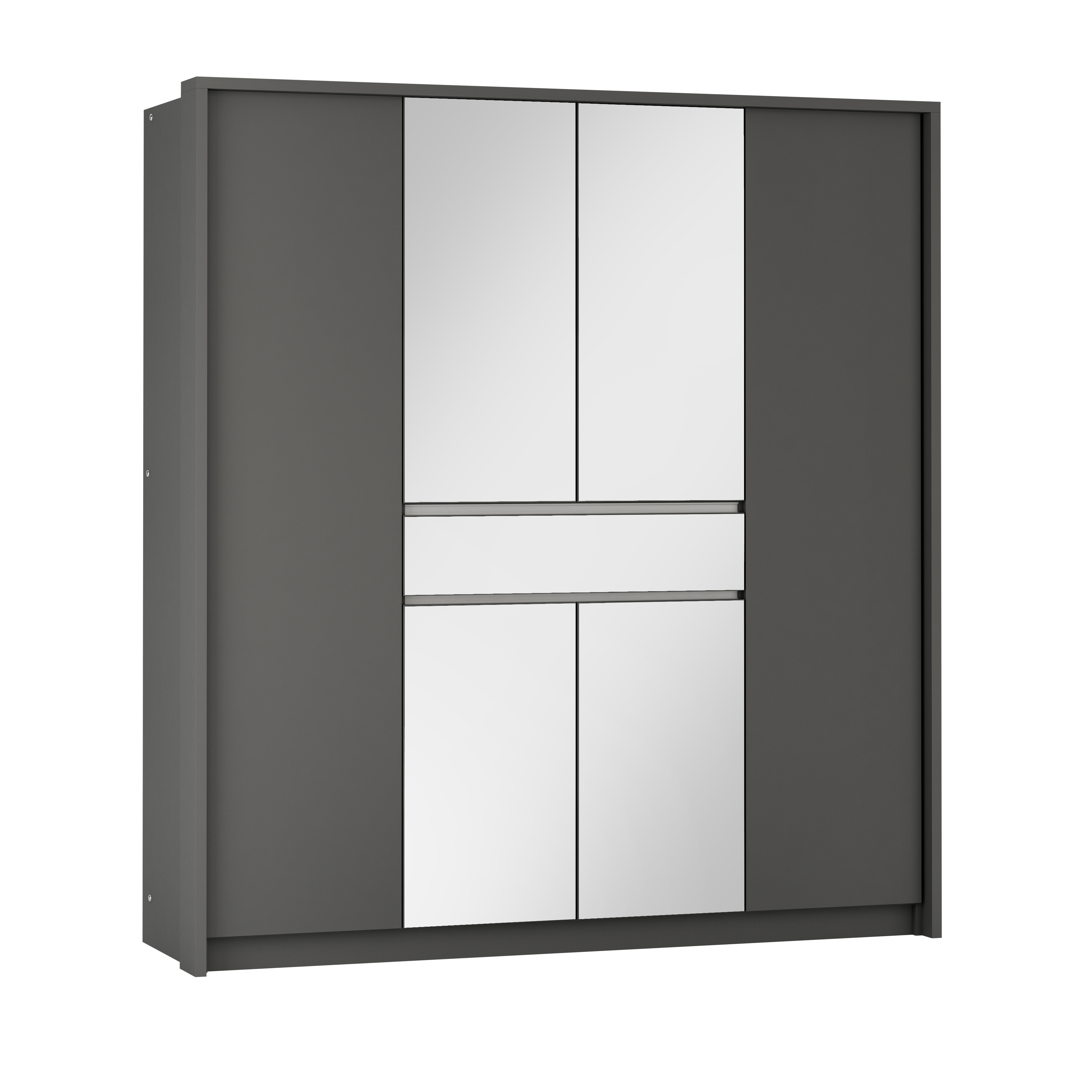 Šatní skříň Split Neobvyklé vnitřní uspořádání dodává skříni na jedinečnosti. A i přesto, že je zrcadlo rozděleno na několik dílů, tak vám opticky zvětší i menší prostory. • Vlastnosti šatní skříně Korpus a dveře Korpus a dveře jsou vyrobeny z kvalitní laminované dřevotřísky LTD o síle 16 mm. Hrany desek Hrany jednotlivých desek jsou opatřeny ABS páskami. Zadní stěna Na zadní stěnu je použita sololitová deska. Typ dveří Šatní skříň má klasické otevírání dveří. Zrcadlo Součástí dveřích je zrcadlo. Barevná varianta Šatní skříň Split je dostupná v bílém, grafitovém a platinovém odstínu. Barevná varianta je doplněna o rozdělené zrcadlo na několik dílů. • Bílá varianta Grafitová varianta Platinová varianta • Vnitřní uspořádání Šířka 210 cmPo levé straně vám bude k dispozici několik polic, uprostřed nich je jedna zásuvka. V pravé části naleznete dvě šatní tyče nad sebou.Šířka 255 cmPo levé a pravé straně vám budou k dispozici šatní tyče. V prostřední části se nachází police, uprostřed nich je jedna zásuvka. • Rozměry 217 cm celková výška 157 / 200 cm celková šířka 65 cm celková hloubka 16 mm tloušťka desky Podrobné instruktážní návody v odkazech níže ke stažení↓↓↓>> Šířka 157 cm Šířka 200 cm
