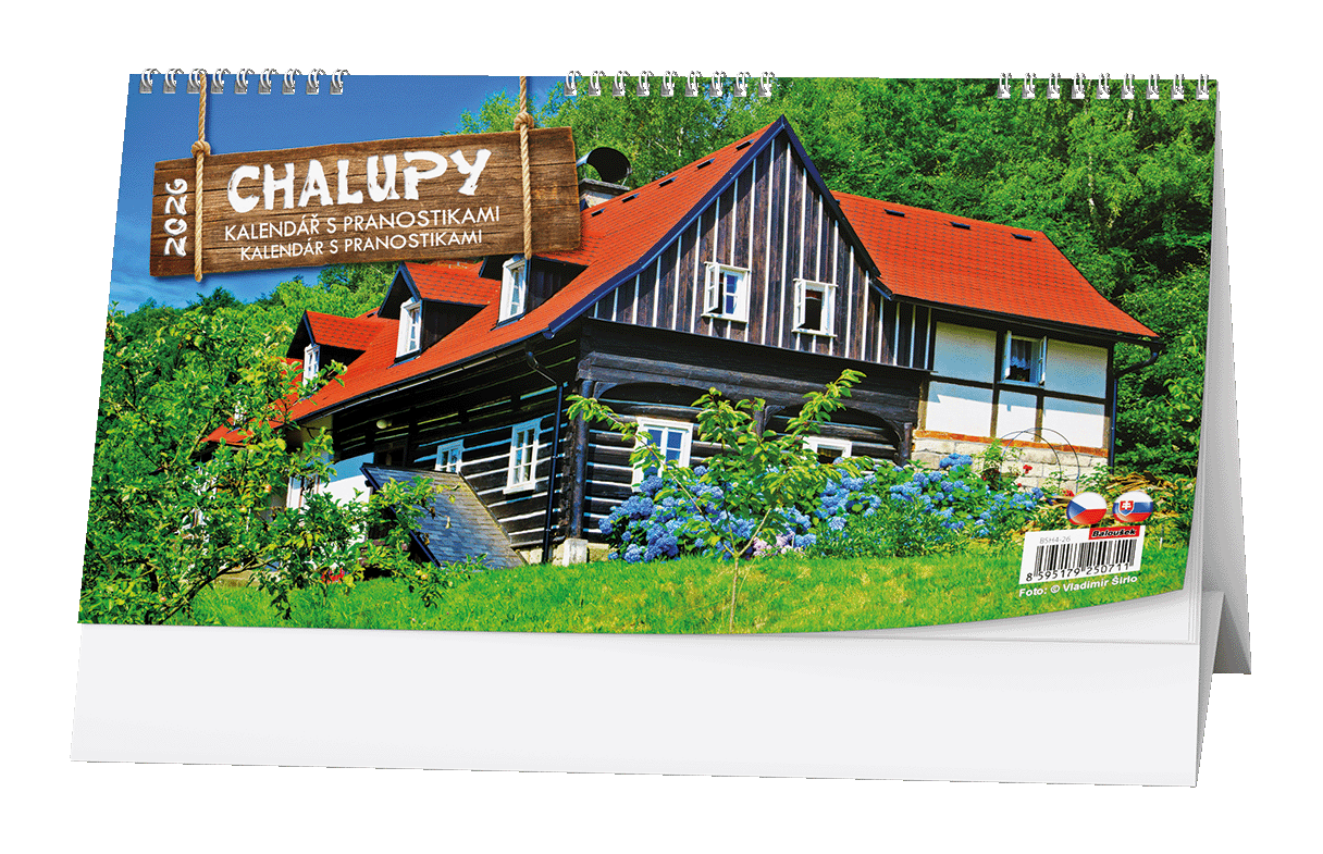 Stolní kalendář se čtrnáctidenním kalendáriem, s obrázky chalup a pranostikami. Papír: G print, 100 g/m2 Obálka: křída lesk 135 g/m2 Stojánek je z kvalitní bílé lepenky 600 g/m2 Dělená kovová spirála "twin wire"   Možnosti potisku kalendáře Kalendář je možné nechat individuálně potisknout. Potisk se provádí na stojánek (na jednu nebo obě strany) různými způsoby dle složitosti a barevnosti loga či obrázku. Používá se digitální tisk, sítotisk, stejně jako nalepení potisku. Možné jsou i další úpravy jako třeba výměna titulní strany za vaši reklamní. Základní potisk se obvykle provádí pro minimální počet 50 ks kalendářů. V případě zájmu o jakoukoliv úpravu nás kontaktujte na e-mail zobac@papirnictvioskarek.cz nebo telefonicky na tel. 608 939 293. Rádi s Vámi probereme veškeré možnosti. Zakupte produkt Stolní kalendář 2026 Baloušek - Chalupy z kategorie Kalendáře, diáře | Stolní kalendáře 2026 | Obrázkové | Baloušek od výrobce Baloušek za cenu 46.9 Kč.