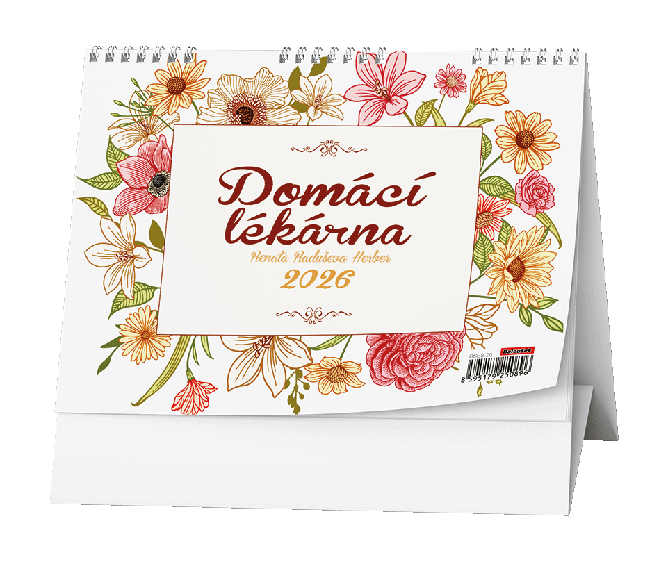 Stolní kalendář s týdenním kalendáriem a s radami z domácí lékárny od paní Renaty Raduševy Herber. Papír: G print, 100 g/m2 Obálka: křída lesk 135 g/m2 Stojánek je z kvalitní bílé lepenky 600 g/m2 Dělená kovová spirála "twin wire" Možnosti potisku kalendáře Kalendář je možné nechat individuálně potisknout. Potisk se provádí na stojánek (na jednu nebo obě strany) různými způsoby dle složitosti a barevnosti loga či obrázku. Používá se digitální tisk, sítotisk, stejně jako nalepení potisku. Možné jsou i další úpravy jako třeba výměna titulní strany za vaši reklamní. Základní potisk se obvykle provádí pro minimální počet 50 ks kalendářů. V případě zájmu o jakoukoliv úpravu nás kontaktujte na e-mail zobac@papirnictvioskarek.cz nebo telefonicky na tel. 608 939 293. Rádi s Vámi probereme veškeré možnosti. Zakupte produkt Stolní kalendář 2026 Baloušek - Domácí lékárna (Renata Raduševa Herber) z kategorie Kalendáře, diáře | Stolní kalendáře 2026 | Obrázkové | Baloušek od výrobce Baloušek za cenu 53 Kč.