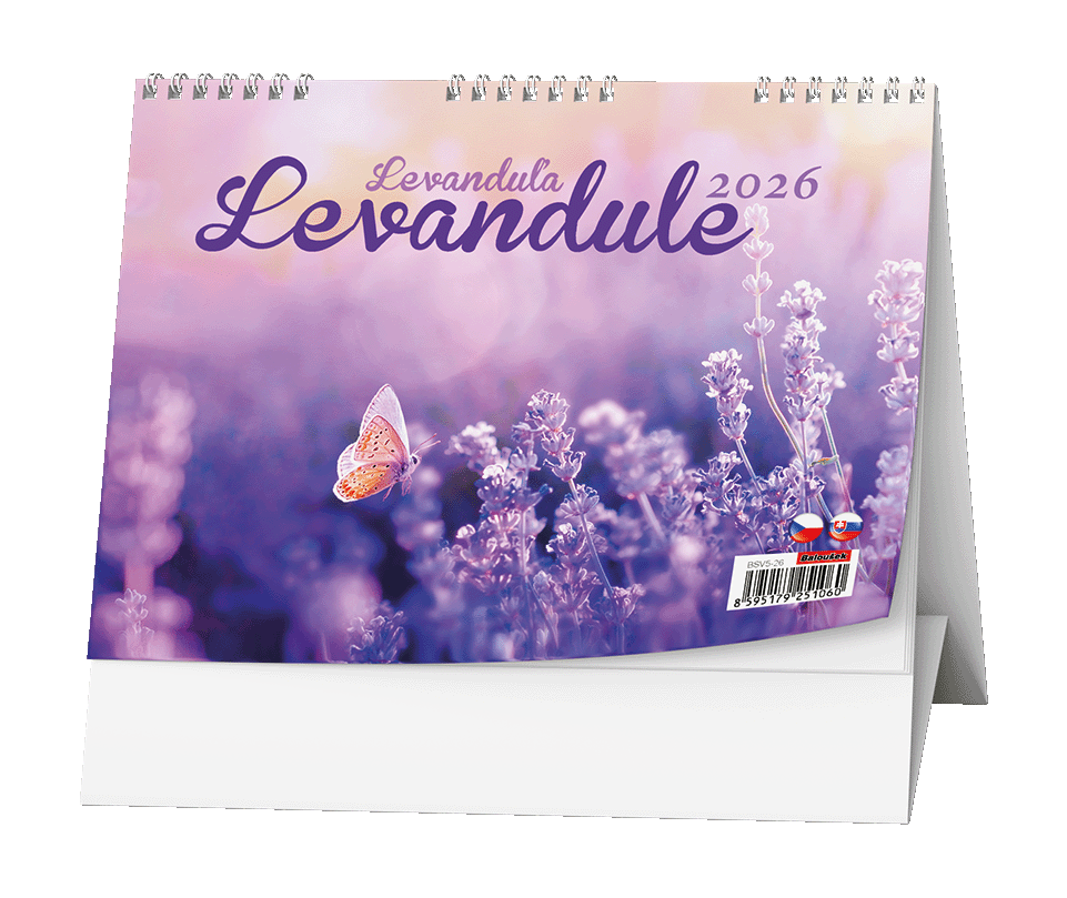 Stolní kalendář s týdenním kalendáriem a s levandulovým motivem. Papír: G print, 100 g/m2 Obálka: křída lesk 135 g/m2 Stojánek je z kvalitní bílé lepenky 600 g/m2 Dělená kovová spirála "twin wire"   Možnosti potisku kalendáře Kalendář je možné nechat individuálně potisknout. Potisk se provádí na stojánek (na jednu nebo obě strany) různými způsoby dle složitosti a barevnosti loga či obrázku. Používá se digitální tisk, sítotisk, stejně jako nalepení potisku. Možné jsou i další úpravy jako třeba výměna titulní strany za vaši reklamní. Základní potisk se obvykle provádí pro minimální počet 50 ks kalendářů. V případě zájmu o jakoukoliv úpravu nás kontaktujte na e-mail zobac@papirnictvioskarek.cz nebo telefonicky na tel. 608 939 293. Rádi s Vámi probereme veškeré možnosti. Zakupte produkt Stolní kalendář 2026 Baloušek - Levandule z kategorie Kalendáře, diáře | Stolní kalendáře 2026 | Obrázkové | Baloušek od výrobce Baloušek za cenu 52 Kč.