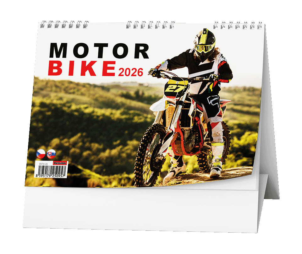 Stolní kalendář s týdenním kalendáriem pro milovníky rychlých motorek. Papír: G print, 100 g/m2 Obálka: křída lesk 135 g/m2 Stojánek je z kvalitní bílé lepenky 600 g/m2 Dělená kovová spirála "twin wire" Možnosti potisku kalendáře Kalendář je možné nechat individuálně potisknout. Potisk se provádí na stojánek (na jednu nebo obě strany) různými způsoby dle složitosti a barevnosti loga či obrázku. Používá se digitální tisk, sítotisk, stejně jako nalepení potisku. Možné jsou i další úpravy jako třeba výměna titulní strany za vaši reklamní. Základní potisk se obvykle provádí pro minimální počet 50 ks kalendářů. V případě zájmu o jakoukoliv úpravu nás kontaktujte na e-mail zobac@papirnictvioskarek.cz nebo telefonicky na tel. 608 939 293. Rádi s Vámi probereme veškeré možnosti. Zakupte produkt Stolní kalendář 2026 Baloušek - Motorbike z kategorie Kalendáře, diáře | Stolní kalendáře 2026 | Obrázkové | Baloušek od výrobce Baloušek za cenu 53 Kč.