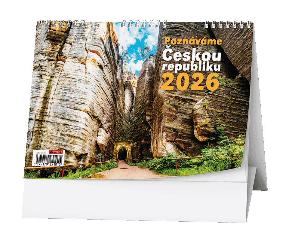 Stolní kalendář s týdenním kalendáriem s obrázky známých míst v naší zemi. Papír: G print, 100 g/m2 Obálka: křída lesk 135 g/m2 Stojánek je z kvalitní bílé lepenky 600 g/m2 Dělená kovová spirála "twin wire" Možnosti potisku kalendáře Kalendář je možné nechat individuálně potisknout. Potisk se provádí na stojánek (na jednu nebo obě strany) různými způsoby dle složitosti a barevnosti loga či obrázku. Používá se digitální tisk, sítotisk, stejně jako nalepení potisku. Možné jsou i další úpravy jako třeba výměna titulní strany za vaši reklamní. Základní potisk se obvykle provádí pro minimální počet 50 ks kalendářů. V případě zájmu o jakoukoliv úpravu nás kontaktujte na e-mail zobac@papirnictvioskarek.cz nebo telefonicky na tel. 608 939 293. Rádi s Vámi probereme veškeré možnosti. Zakupte produkt Stolní kalendář 2026 Baloušek - Poznáváme Českou republiku z kategorie Kalendáře, diáře | Stolní kalendáře 2026 | Obrázkové | Baloušek od výrobce Baloušek za cenu 53 Kč.