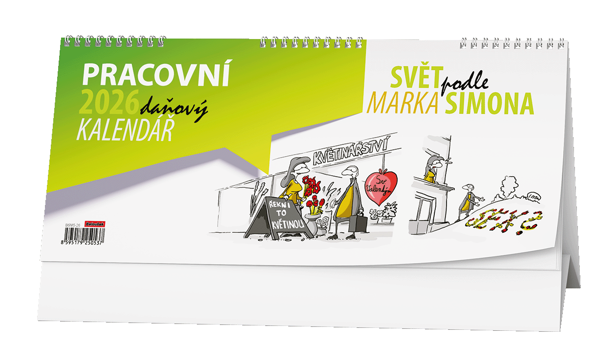 Daňový týdenní kalendář s ilustrovanými vtipy od Marka Simona, které oživí Váš den. Papír: ofset, 100 g/m2 Obálka: křída lesk 135 g/m2 Stojánek je z kvalitní bílé lepenky 600 g/m2 Dělená kovová spirála "twin wire" Možnosti potisku kalendáře Kalendář je možné nechat individuálně potisknout. Potisk se provádí na stojánek (na jednu nebo obě strany) různými způsoby dle složitosti a barevnosti loga či obrázku. Používá se digitální tisk, sítotisk, stejně jako nalepení potisku. Možné jsou i další úpravy jako třeba výměna titulní strany za vaši reklamní. Základní potisk se obvykle provádí pro minimální počet 50 ks kalendářů. V případě zájmu o jakoukoliv úpravu nás kontaktujte na e-mail zobac@papirnictvioskarek.cz nebo telefonicky na tel. 608 939 293. Rádi s Vámi probereme veškeré možnosti. Zakupte produkt Stolní kalendář 2026 Baloušek - Pracovní daňový - Svět podle Marka Simona z kategorie Kalendáře, diáře | Stolní kalendáře 2026 | Bezobrázkové, pracovní, poznámkové od výrobce Baloušek za cenu 62 Kč.
