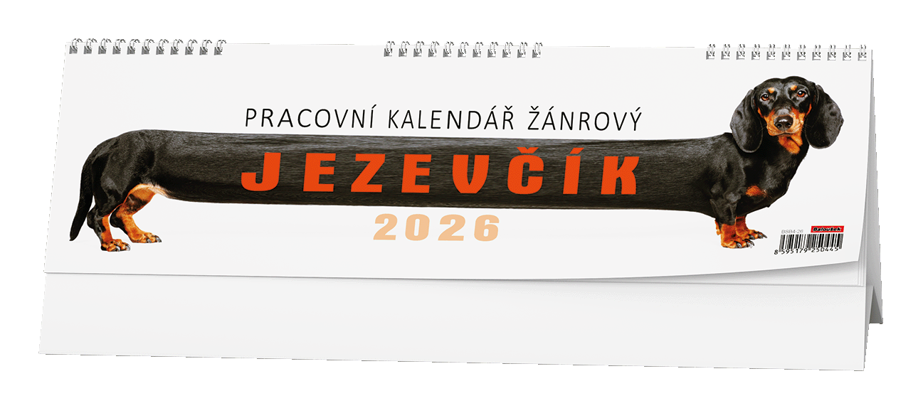 Pracovní kalendář s týdenním kalendáriem v zajímavém formátu a s vtipnými obrázky oživí Váš stůl. Papír: ofset 100 g/m2 Obálka: křída lesk 135 g/m2 Stojánek je z kvalitní bílé lepenky 600 g/m2 Dělená kovová spirála "twin wire" Možnosti potisku kalendáře Kalendář je možné nechat individuálně potisknout. Potisk se provádí na stojánek (na jednu nebo obě strany) různými způsoby dle složitosti a barevnosti loga či obrázku. Používá se digitální tisk, sítotisk, stejně jako nalepení potisku. Možné jsou i další úpravy jako třeba výměna titulní strany za vaši reklamní. Základní potisk se obvykle provádí pro minimální počet 50 ks kalendářů. V případě zájmu o jakoukoliv úpravu nás kontaktujte na e-mail zobac@papirnictvioskarek.cz nebo telefonicky na tel. 608 939 293. Rádi s Vámi probereme veškeré možnosti. Zakupte produkt Stolní kalendář 2026 Baloušek - Pracovní žánrový - Jezevčík z kategorie Kalendáře, diáře | Stolní kalendáře 2026 | Bezobrázkové, pracovní, poznámkové od výrobce Baloušek za cenu 64 Kč.