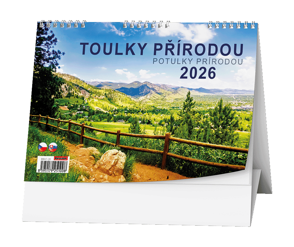 Stolní kalendář s týdenním kalendáriem s obrázky přírodních scenérií. Papír: G print, 100 g/m2 Obálka: křída lesk 135 g/m2 Stojánek je z kvalitní bílé lepenky 600 g/m2 Dělená kovová spirála "twin wire" Možnosti potisku kalendáře Kalendář je možné nechat individuálně potisknout. Potisk se provádí na stojánek (na jednu nebo obě strany) různými způsoby dle složitosti a barevnosti loga či obrázku. Používá se digitální tisk, sítotisk, stejně jako nalepení potisku. Možné jsou i další úpravy jako třeba výměna titulní strany za vaši reklamní. Základní potisk se obvykle provádí pro minimální počet 50 ks kalendářů. V případě zájmu o jakoukoliv úpravu nás kontaktujte na e-mail zobac@papirnictvioskarek.cz nebo telefonicky na tel. 608 939 293. Rádi s Vámi probereme veškeré možnosti. Zakupte produkt Stolní kalendář 2026 Baloušek - Toulky přírodou z kategorie Kalendáře, diáře | Stolní kalendáře 2026 | Obrázkové | Baloušek od výrobce Baloušek za cenu 52 Kč.