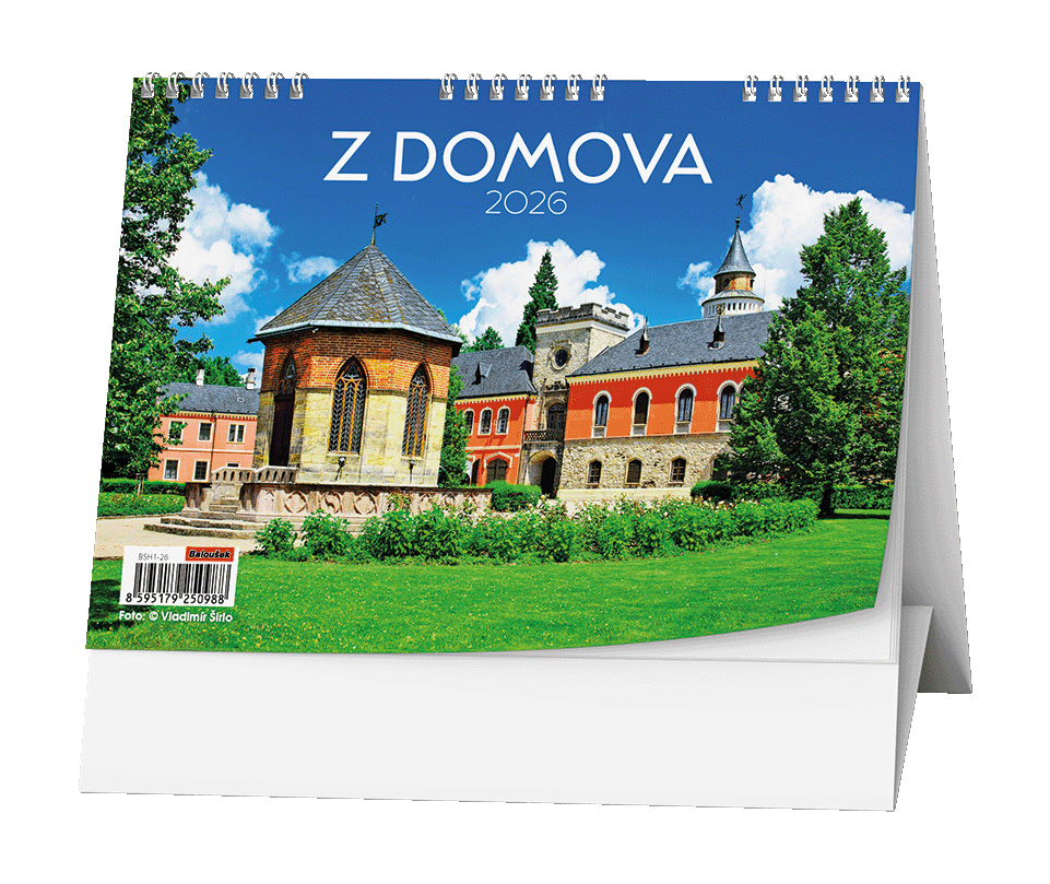 Stolní kalendář s týdenním kalendáriem s obrázky scenérií České republiky. Papír: G print, 100 g/m2 Obálka: křída lesk 135 g/m2 Stojánek je z kvalitní bílé lepenky 600 g/m2 Dělená kovová spirála "twin wire" Možnosti potisku kalendáře Kalendář je možné nechat individuálně potisknout. Potisk se provádí na stojánek (na jednu nebo obě strany) různými způsoby dle složitosti a barevnosti loga či obrázku. Používá se digitální tisk, sítotisk, stejně jako nalepení potisku. Možné jsou i další úpravy jako třeba výměna titulní strany za vaši reklamní. Základní potisk se obvykle provádí pro minimální počet 50 ks kalendářů. V případě zájmu o jakoukoliv úpravu nás kontaktujte na e-mail zobac@papirnictvioskarek.cz nebo telefonicky na tel. 608 939 293. Rádi s Vámi probereme veškeré možnosti. Zakupte produkt Stolní kalendář 2026 Baloušek - Z domova z kategorie Kalendáře, diáře | Stolní kalendáře 2026 | Obrázkové | Baloušek od výrobce Baloušek za cenu 53 Kč.