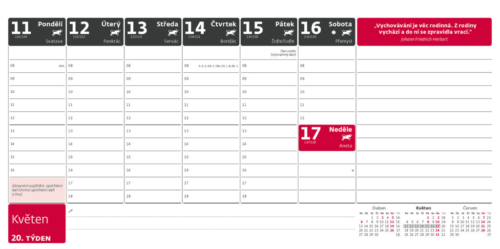 Stolní plánovací kalendář na rok 2026 od tradičního a oblíbeného výrobce Helma 365. Formát kalendáře: 30,1 x 15 cm Kalendárium: české týdenní sloupcové Počet stran kalendáře: 60 + 2 Stojánek: s plným dnem Prostor pro přítisk: 30,1 x 3,5 cm + daně, roční období, znamení zvěrokruhu, citáty, EU svátky, 3měsíční přehled Možnosti potisku kalendáře Kalendář je možné nechat individuálně potisknout. Potisk se provádí na stojánek (na jednu nebo obě strany) různými způsoby dle složitosti a barevnosti loga či obrázku. Používá se digitální tisk, sítotisk, stejně jako nalepení potisku. Možné jsou i další úpravy jako třeba výměna titulní strany za vaši reklamní. Základní potisk se obvykle provádí pro minimální počet 50 ks kalendářů. V případě zájmu o jakoukoliv úpravu nás kontaktujte na e-mail zobac@papirnictvioskarek.cz nebo telefonicky na tel. 608 939 293. Rádi s Vámi probereme veškeré možnosti. Zakupte produkt Stolní kalendář 2026 Helma - Plánovací s poznámkami z kategorie Kalendáře, diáře | Stolní kalendáře 2026 | Bezobrázkové, pracovní, poznámkové od výrobce Helma 365 za cenu 58 Kč.