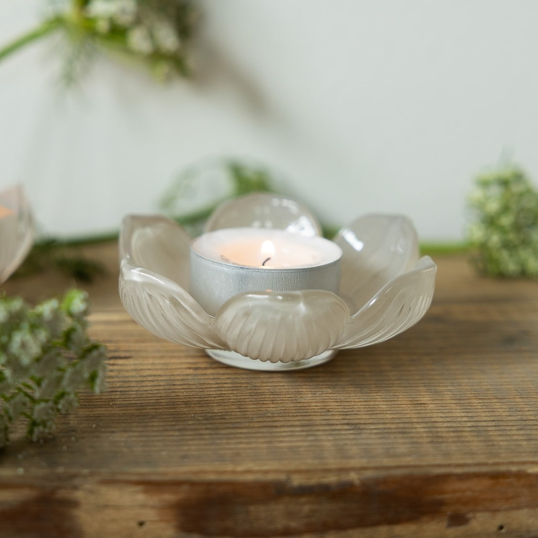 Každý kus je ručně vyráběný, a drobné bublinky ve skle jsou tak přirozenou součástí materiálu a dělají z každého svícnu originál. průměr 9 cm / výška 3 cm Vyrobeno ze skla.