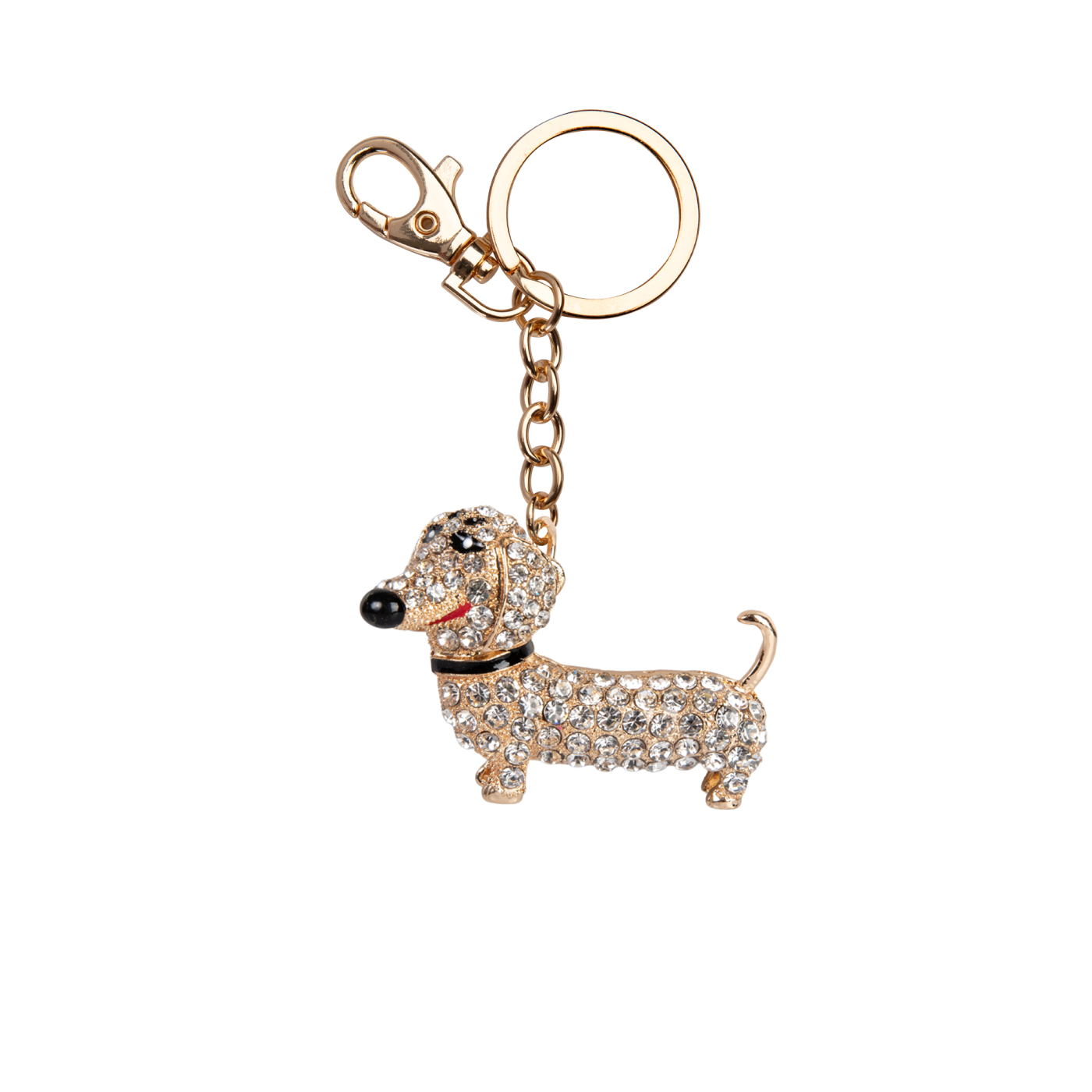 Kovová klíčenka posázená třpytivými kamínky potěší každou ženu. Karabinka s kroužkem zaručí, že si klíčenku můžete kamkoli připnout. Materiál: kov