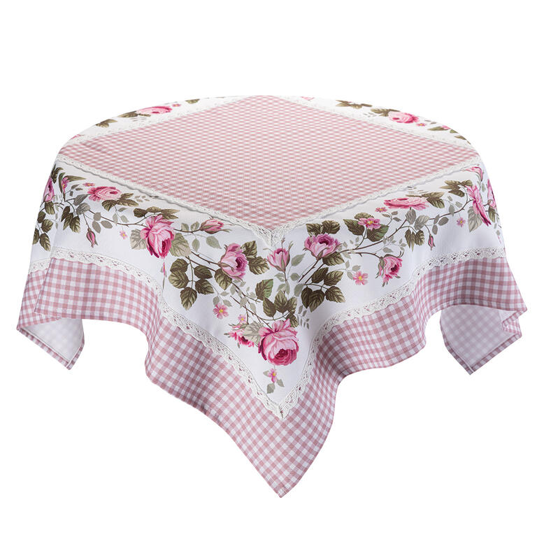 Ubrus s něžným potiskem růžiček a tradičním károvaným motivem bude slušet vašemu stolu jak v kuchyni, tak v obývacím pokoji.