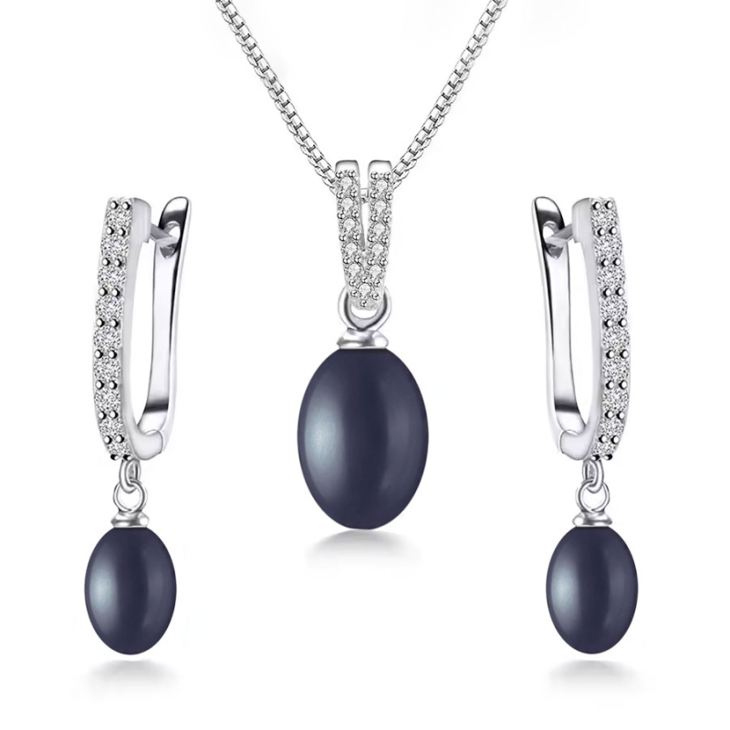 Tato luxusní stříbrná souprava šperků s černými sladkovodními perlami a třpytivými zirkony je dokonalým spojením elegance a nadčasového stylu. Černé perly se vyznačují fascinující hrou barev – jejich hluboký odstín odráží jemné odlesky v tónech od tmavě modré přes smaragdově zelenou až po fialkový nádech. Každý pohyb a dopad světla vytváří jedinečný efekt, který dodává šperkům tajemný a sofistikovaný vzhled. Precizní osazení zirkony podtrhuje krásu perel a přidává soupravě zářivý lesk. Náušnice i přívěsek na řetízku jsou vyrobeny ze stříbra, které je nejen elegantní, ale také odolné a vhodné i pro citlivou pokožku. Jemné linie a kvalitní zpracování dělají z této soupravy skutečně luxusní doplněk, který je pohodlný na nošení a hodí se pro každou příležitost. Tento exkluzivní set je ideální volbou pro ženy, které oceňují eleganci s nádechem tajemství. Skvěle doplní jak večerní róbu, tak i formální nebo business outfit. Perfektní dárek k výročí, narozeninám či jiným významným okamžikům, kdy chcete vyjádřit svou lásku a obdiv. 🔔 Tip: Černé perly jsou považovány za symbol ochrany a síly. Chcete-li ještě více podtrhnout jejich krásu, kombinujte tuto soupravu s černými nebo tmavě modrými šaty, které zdůrazní jejich fascinující odlesky.