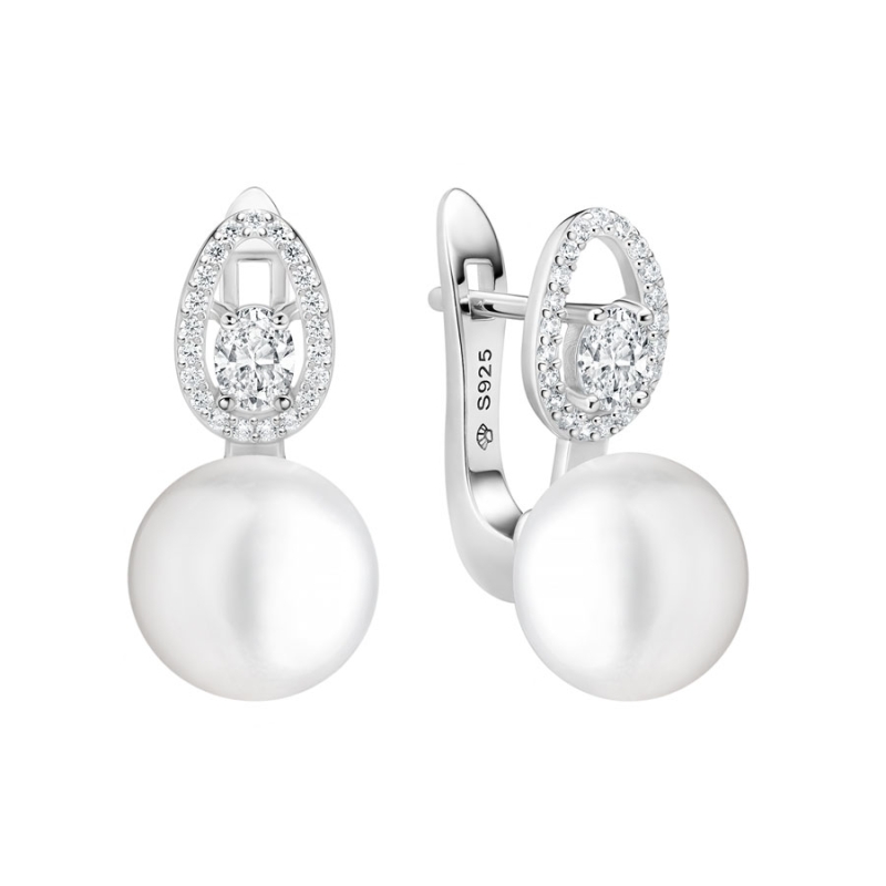 Tyto luxusní stříbrné náušnice s pravou bílou perlou o průměru 10 mm ztělesňují nadčasovou eleganci, která nikdy neztrácí svůj půvab. Dokonalé spojení jemného lesku stříbra, třpytu zirkonů a přirozené krásy perly vytváří harmonický celek, který působí noblesně a ženským dojmem.Zirkony ve tvaru oválu obklopují centrální kámen a dodávají náušnicím jiskru, která přitahuje pozornost při každém pohybu. Perly symbolizují čistotu a dokonalost – jejich přirozený lesk podtrhuje krásu každé ženy, která si potrpí na decentní, ale výrazné doplňky.Díky kvalitnímu zpracování a pohodlnému zapínání na klapku se náušnice výborně nosí po celý den. Skvěle doplní večerní róbu, společenské šaty i elegantní pracovní outfit. Jsou šperkem, který zvýrazní osobnost a dodá každému okamžiku nádech luxusu. 💡 Tip: Vyniknou při elegantním účesu s vyčesanými vlasy, kde se plně projeví jejich tvar i třpyt. Ideální doplněk k šatům v bílé, černé nebo pastelové barvě.